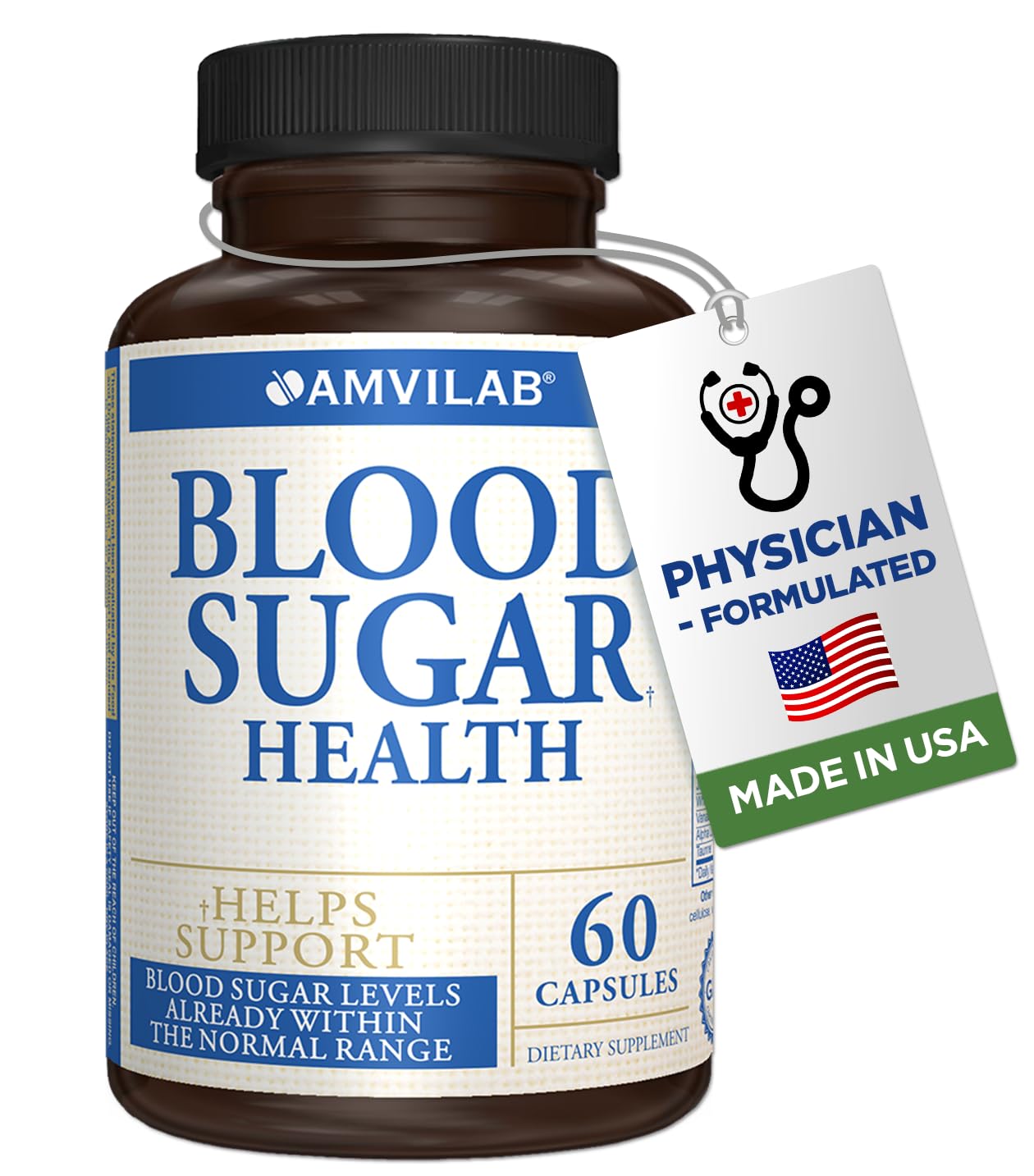AMVILAB Blood Sugar Health Natural 20 Herbs and Vitamins with Cinnamon Alpha Lipoic Acid to Support Health Non-GMO for Men Women Supports Healthy Energy Levels - 60 Herbal Pills - 30 Day Supply