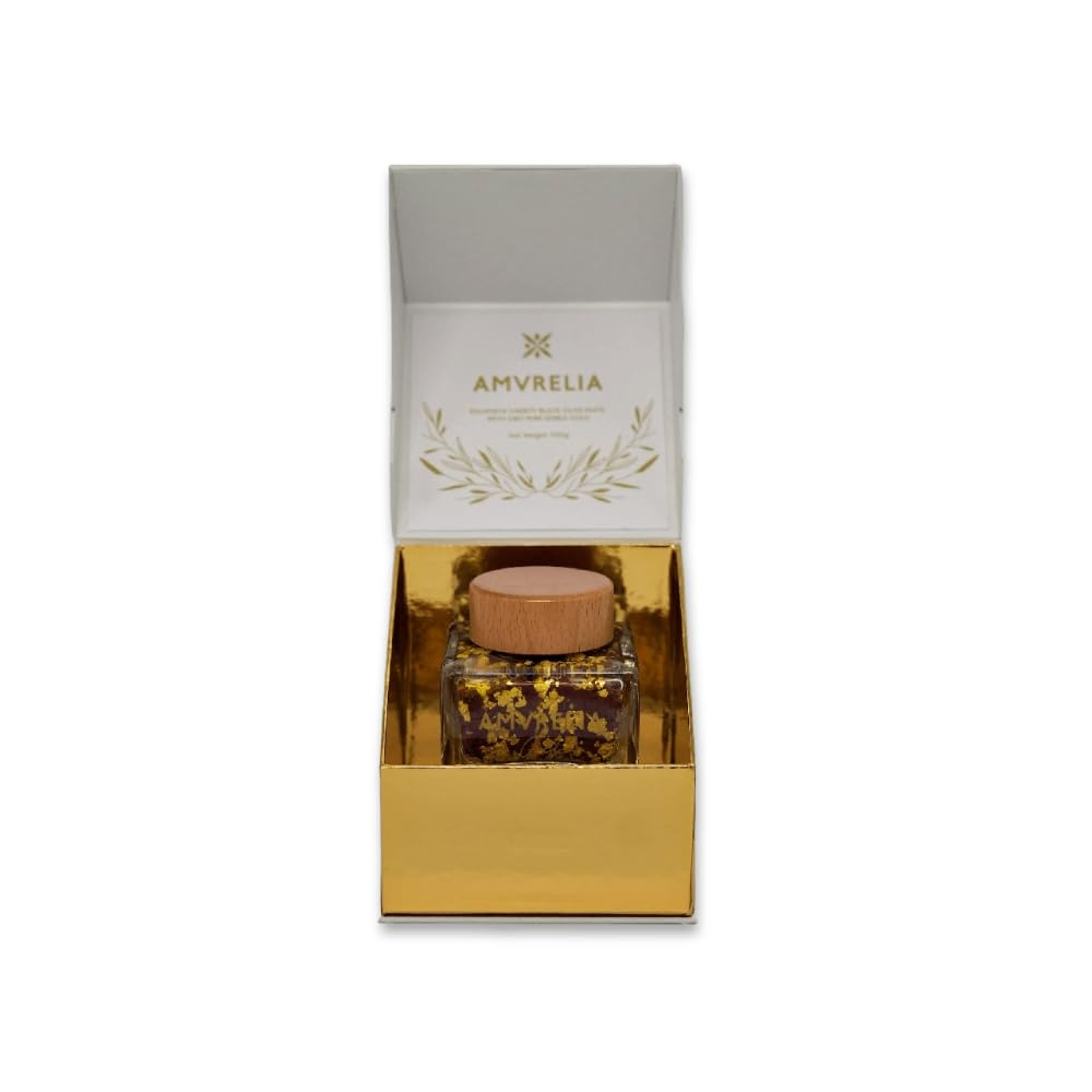 Sensory Experience: A true explosion of flavors for your taste buds thanks to a secret marinade recipe. The exceptional flavor and rich aromas combined with pure 24-carat edible gold will take you back to the ancient city of Arta, Amvrakia, a rich and legendary empire of Greece. Traditional Methods: 100 natural product, without chemicals, using methods passed down for two generations in our state-of-the-art facilities. Natural Fermentation: A 2-year natural fermentation process gives them a rich and authentic flavor. Exclusive Selection: Only the best are specially transformed into a creamy paste that contains only the flesh of the olive, guaranteeing a velvety and rich taste like no other. Hand-Picked: Premium olives, hand-picked one by one, naturally fermented for 2 years and marinated according to our secret recipe.Expérience sensorielle : Une véritable explosion de saveurs pour vos papilles grâce à une recette secrète de marinade. La saveur exceptionnelle et les arômes riches combinés à l'or pur comestible 24 carats vous ramèneront à l'ancienne ville d'Arta, Amvrakia, un empire riche et légendaire de la Grèce. Méthodes traditionnelles : Produit 100 naturel, sans produits chimiques, selon des méthodes transmises depuis deux générations dans nos installations ultramodernes. Fermentation naturelle : Un processus de fermentation naturelle de 2 ans leur confère une saveur riche et authentique. Sélection exclusive : seuls les meilleurs sont transformés de manière spéciale en une pâte crémeuse qui ne contient que la chair de l'olive, garantissant un goût velouté et riche comme les autres. Cueillette manuelle : Olives de première qualité, cueillies à la main une à une, fermentées naturellement pendant 2 ans et marinées selon notre recette secrète.