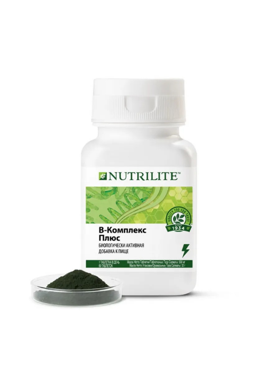 NUTRILITE Витамин B Плюс — это двухслойные таблетки с технологией мгновенного и пролонгированного (до восьми часов) высвобождения. В их состав входят натуральная спирулина и восемь незаменимых витаминов группы B.