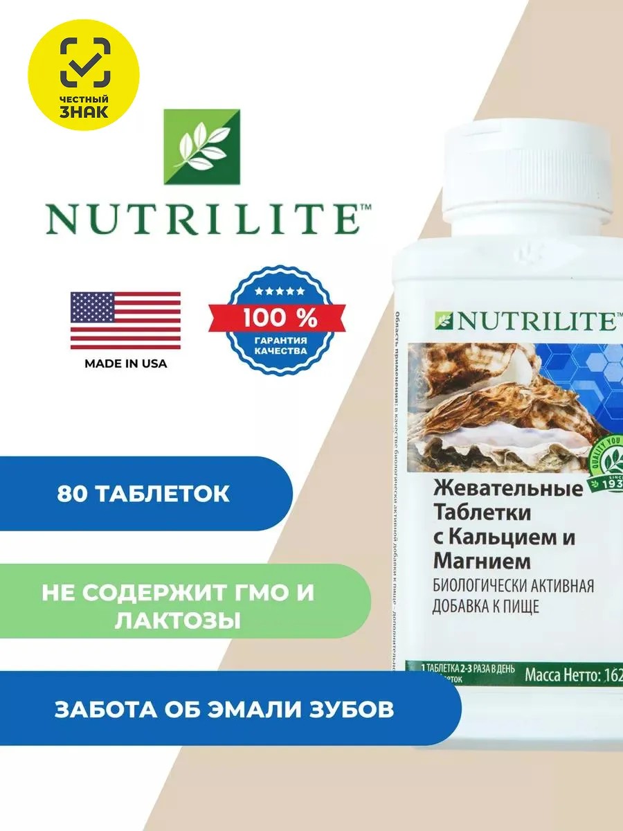 Amway NUTRILITE Жевательные таблетки с кальцием и магнием, 80 таб