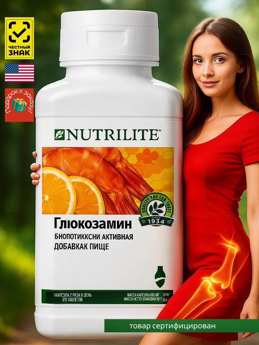 NUTRILITE Глюкозамин: Поддерживает естественную выработку веществ для здоровья суставов! (Amway)