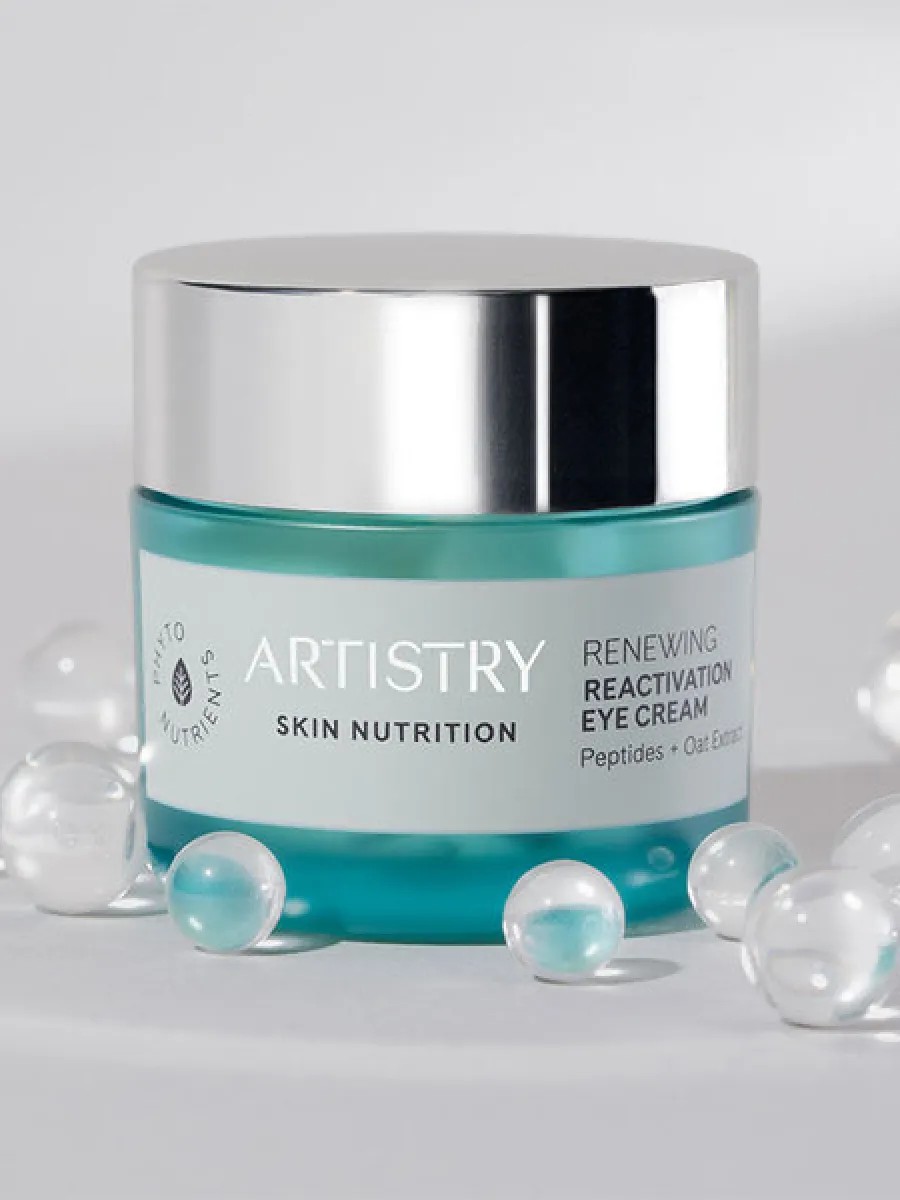 Immerse yourself in a world of luxury and care with Amway's restorative eye cream, featuring the unique Artistry Skin Nutrition formula.