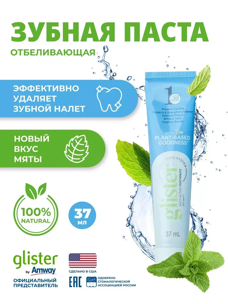 Концентрированная зубная паста Глистер от Амвэй (Эмвей) создана для ухода за полостью рта. Формула с фтором способствует реминерализации эмали и защищает зубы от кариеса. Продукт подходит для взрослых и детей, обеспечивая комплексный уход. Товар изготовлен в США и относится к оригинальной косметике.