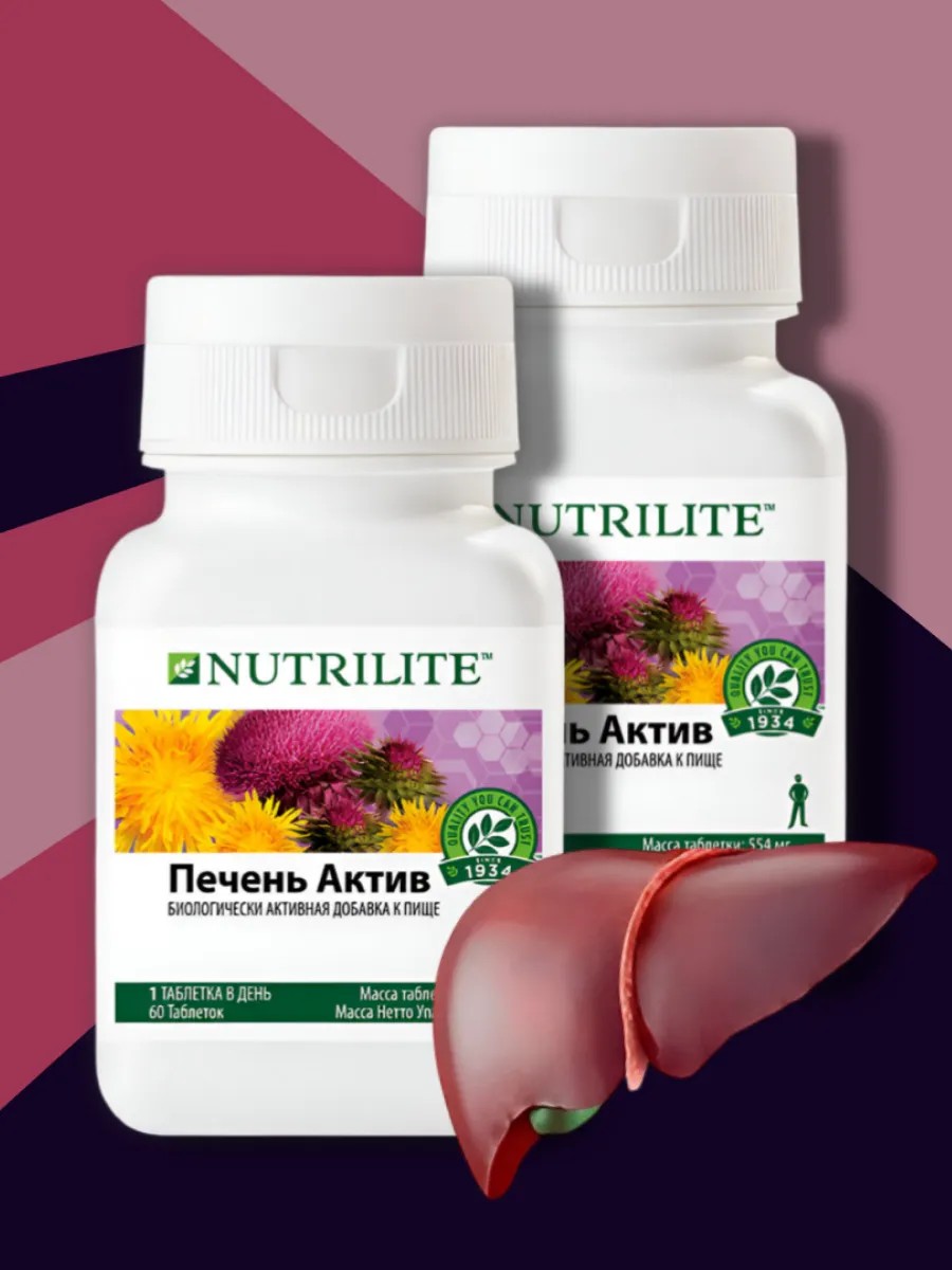 Ухудшение экологической обстановки, повышенное содержание нежелательных примесей в пище, рост потребления медикаментов, употребление алкоголя, метаболические нарушения, бактериальные и вирусные инфекции, нарушение нормальной микрофлоры способствуют формированию заболеваний печени.В состав данного продукта входит экстракт расторопши, которая является мощным антиоксидантом и хорошо известна своим свойством защищать клетки печени.Расторопша способствует улучшению протекающих в печени процессов детоксикации и регенерации поврежденных клеток, помогая поддерживать нормальное функционирование этого важного органа человеческого организма.Дополнительно формула NUTRILITE Печень актив включает в себя пять витаминов группы В (В1, В2, В3, В5 и В12) основная функция которых оказание помощи в освобождении энергии из жиров, углеводов и белков, что также важно для нормального функционирования организма, особенно нервной системы. Витамины группы В важны и для формирования красных кровяных клеток.