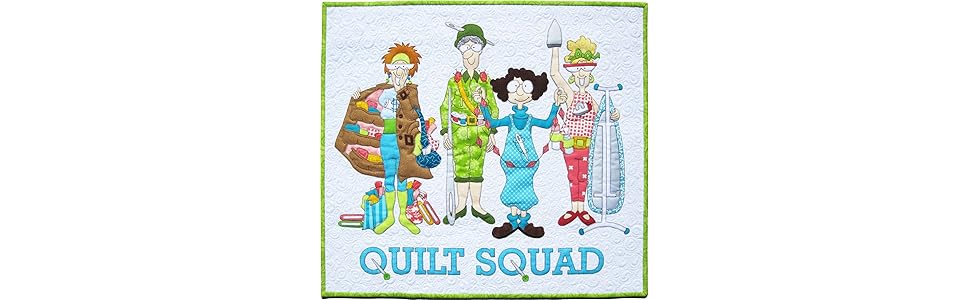 Quilt Squad Pattern includes full size patterns, placement sheets, and instructions to make this 21" x 23.5" wall hanging.
