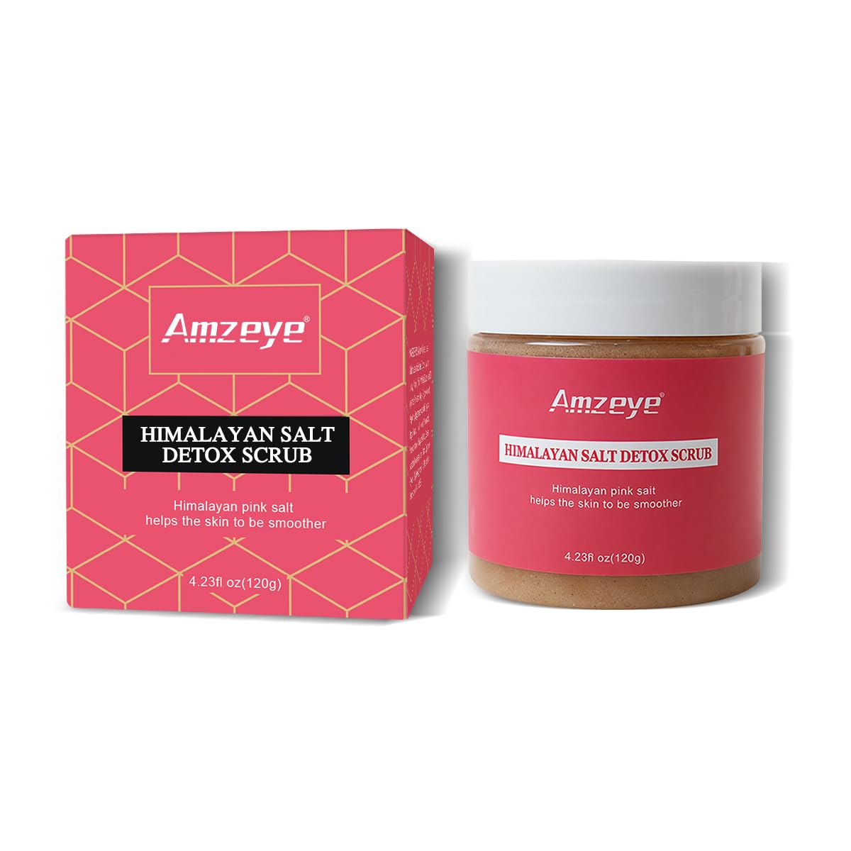 Amzeye Himalayan Salt Detox Scrub 4.23 oz Natural Exfoliator with Walnut Shell Jojoba Oil and Centella Asiatica Grape Seed Oil Anti-aging Body and Face Scrub