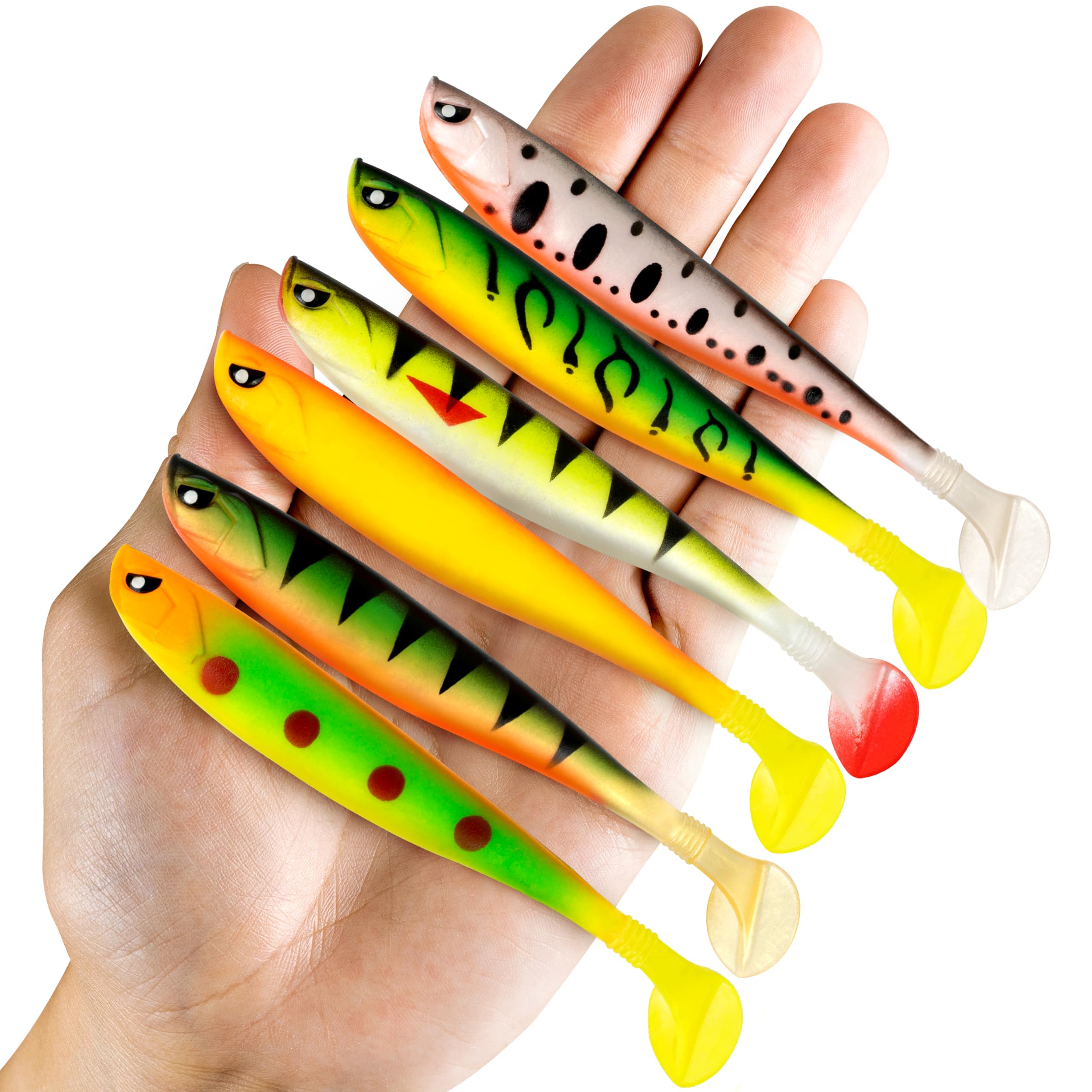 ✓ In the set - to always have the right rubber fish with you, we packed you 12 in 6 colors in the rubber fish set.✓ versatile - whether for piking fishing, for pikeperch or even for a percussion - with 9cm, this rubber fish is easy to use everywhere.This fishing bait is even well suited as rubber fish for Norway.✓ Large shovel tail - To ensure nice mobility, the shovel was made sufficiently large for this rubber fish set.✓ QUALITY - In addition to the mobility, the durability was particularly important to us so that the rubber bait does not look completely ramponized after a short time.✓ Extremely movable - our rubber fish are made from an extremely flexible rubber compound and are extremely seductive even when fishing in slow motion.
