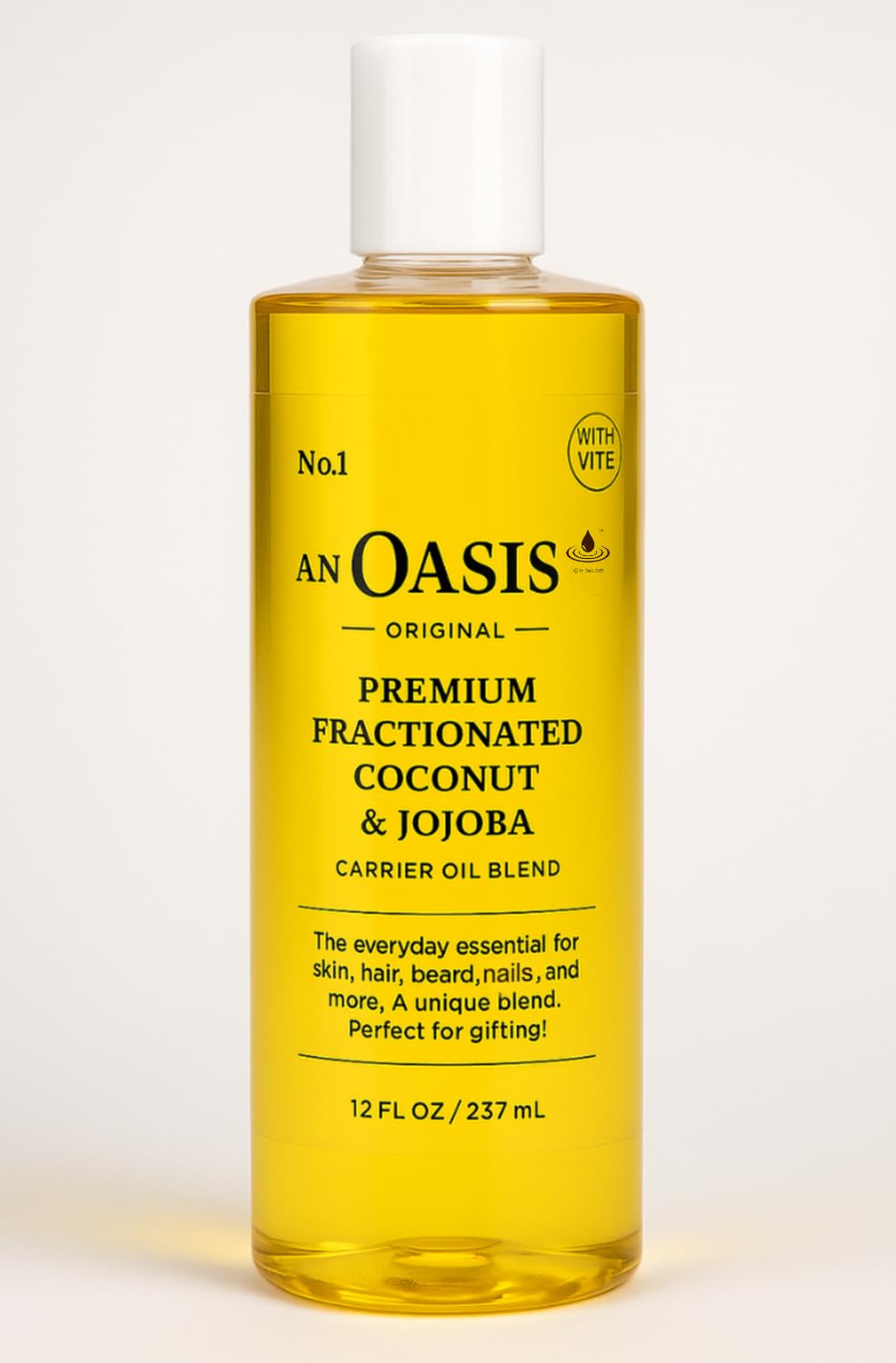 An Oasis Organic Coconut & Jojoba Oil + Vit-E: Blend for Better Skin Comfort Deeper Hair & Beard Hydration Smooth Massage Glide & Better E. Oil Carrier | Elegant 12oz Gift Bottle for Him or Her