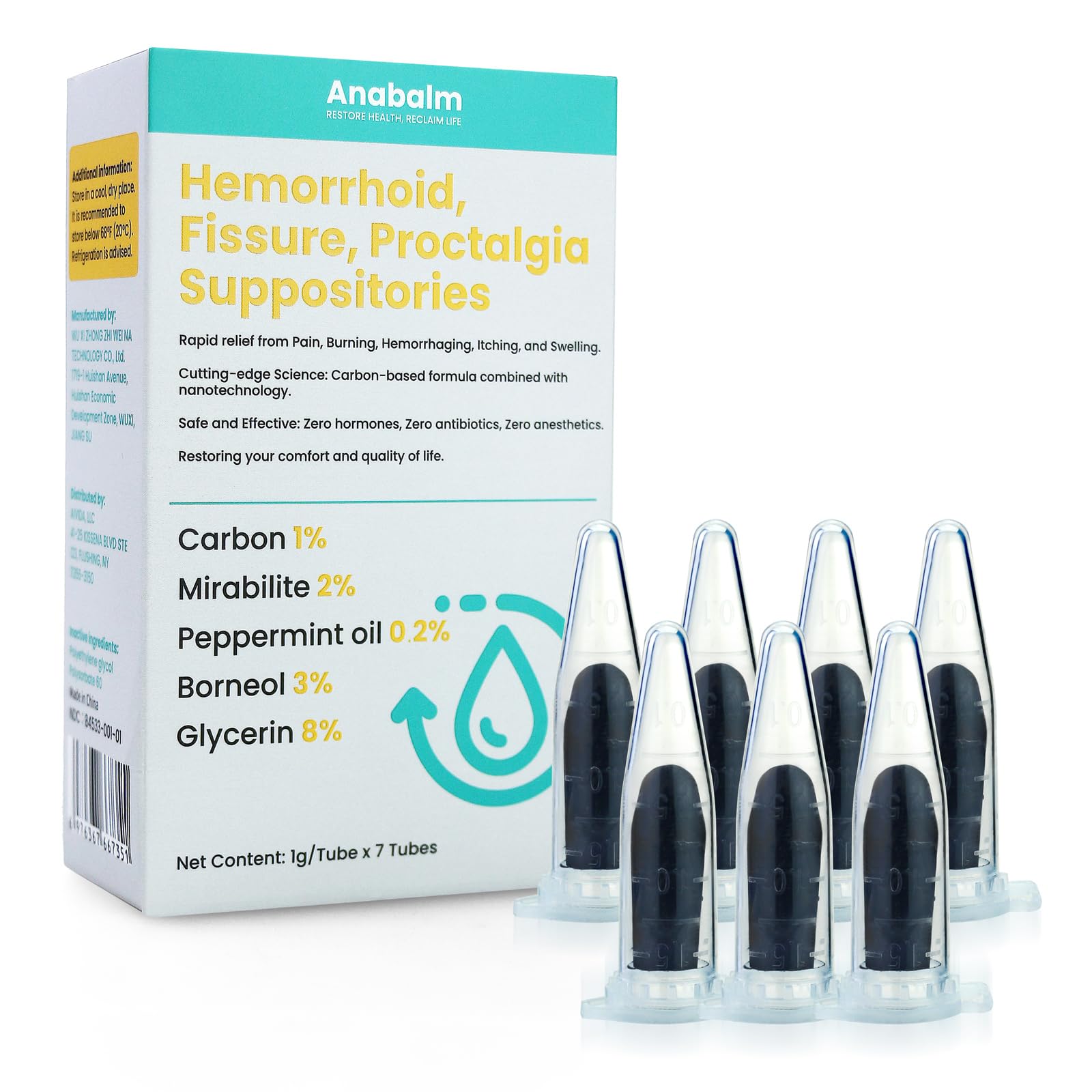 Product Specification - Our package contains individually packed 7 suppositories. It is recommended to use 1 per day. Please read the instruction carefully and pay attention to the precautions before using. (if pregnant or breastfeeding, ask a health professional for advice prior to using). Helps Relieving Hemorrhoids - Temporarily protects the inflamed, irritated anorectal surface to help make bowel movements less painful from irritation and abrasion during bowel movement, provides temporary relief of pain, soreness, or burning, and helps relieve the local or anorectal itching and discomfort associated with hemorrhoids. Convenient And Conducive - Suppositories are better than ointment with higher concentration and precision, pretty stable and effective. It is easy to clean and will not soil your clothes or sheets. All Natural Soothing Rectal Suppositories - Hemorrhoid treatment suppositories contains natural ingredients including carbon, mirabilite, peppermint oil, borneol and glycerin. The activity of the herbal ingredients is known the best to support healing process, all-natural and non-toxic. Carbon-based formula combined with nanotechnology brings you the cutting-edge science. Rectal Suppositories Designed For Various Groups - This suppository is capable of meeting the demands of various groups, such as people with hemorrhoid caused by a sedentary lifestyle, mothers after delivery or lovers fond of anal sex. It offers you rapid relief from pain, burning, hemorrhaging, itching and swelling.