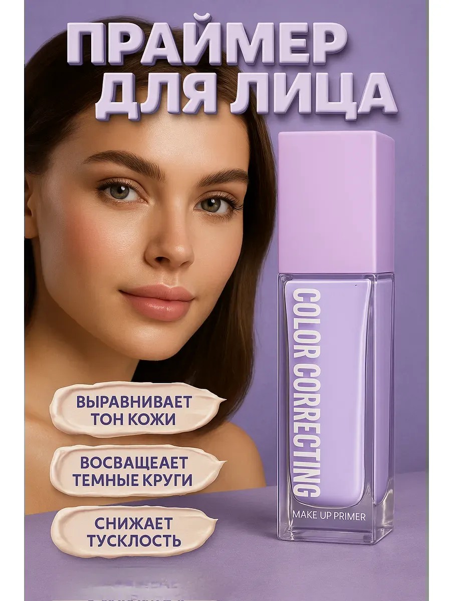 Лавандовый праймер-корректор для лица — это современная база под макияж, которая помогает достичь идеально ровного тона кожи и создать стойкий макияж на весь день. Средство сочетает функции праймера и цветокорректора: его нежный сиреневый оттенок нейтрализует желтизну, устраняет тусклость и придаёт коже свежесть. Благодаря лёгкой текстуре праймер быстро распределяется, не утяжеляет макияж и подходит для любого типа кожи — сухой, нормальной, жирной или комбинированной.