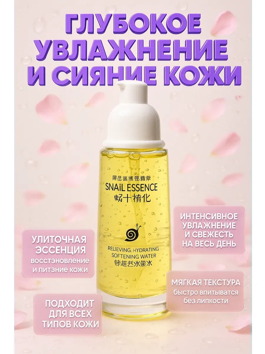 глубокое увлажнение и восстановление кожи благодаря улиточной эссенции;