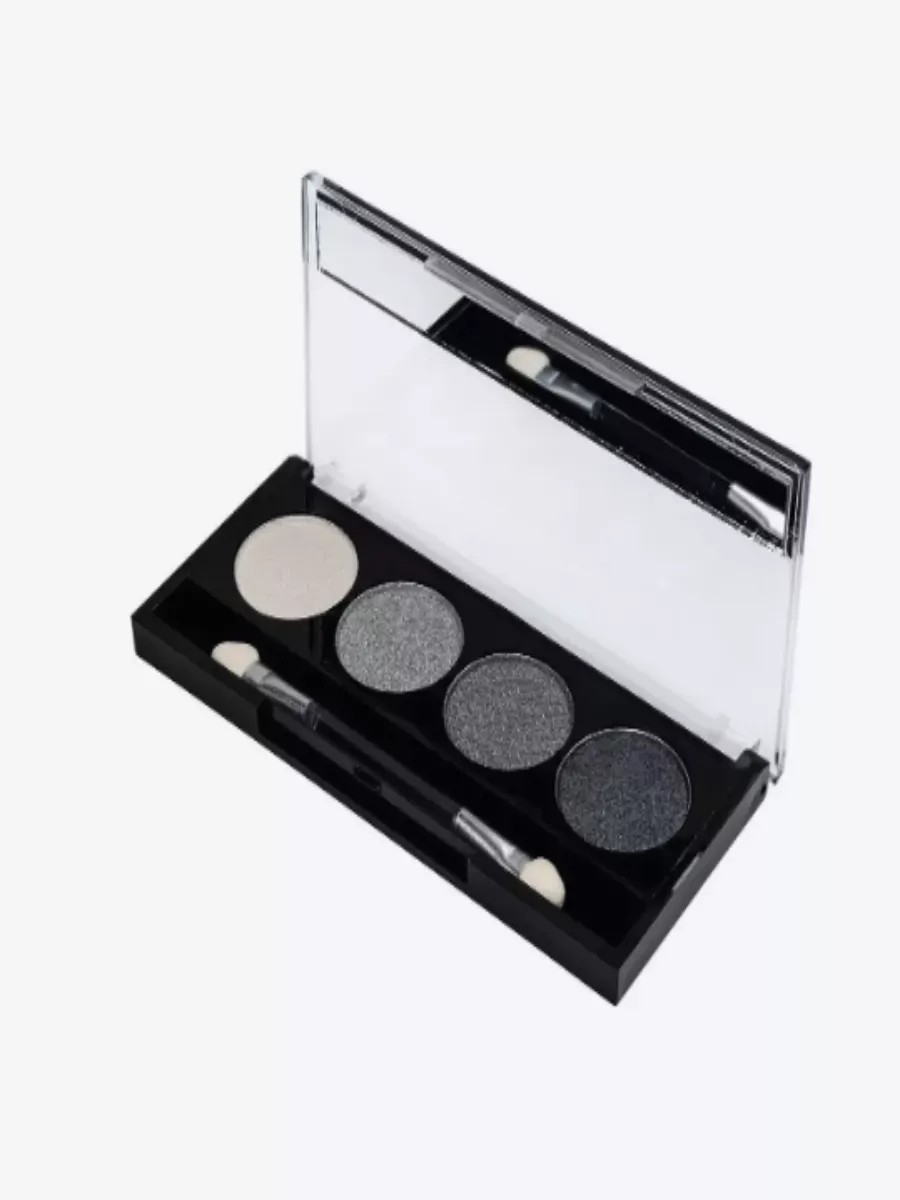 Four-color eyeshadow palette, shade 01. This mini palette of four shades offers a harmoniously curated palette of matte and pearlescent eyeshadows for creating unique, elegant, and vibrant looks. This eyeshadow set offers a harmonious blend of four intense shades that perfectly complement each other for a beautiful eye look. Pressed eyeshadows have a silky texture. The palettes offer a perfect blend of shades. They don't crease. A convenient mirror and applicator are included.