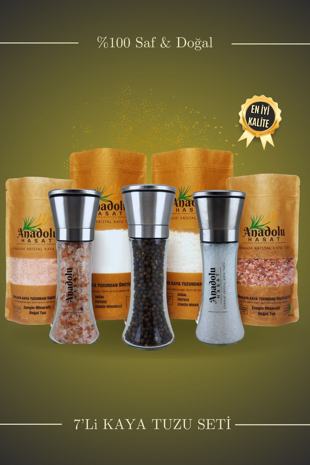 ANATOLIAN HASAT CANKIRI ROCK SALT SET OF 7 - CANKIRI AND HIMALAYA CRYSTAL ROCK SALT AND CERAMIC SET