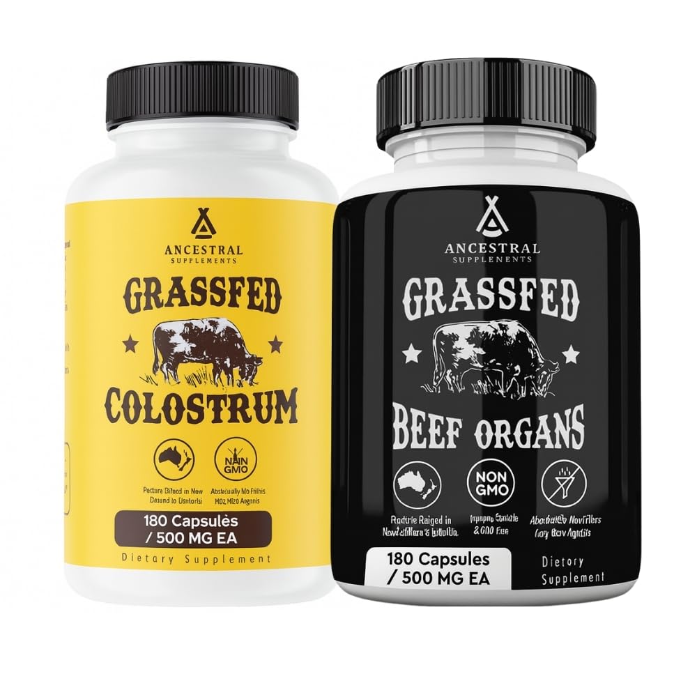 Ancestral Supplements Beef Organs & Colostrum Bundle Supports Immunity Energy Digestion & Recovery Grass Fed Pasture Raised Multivitamin with Liver Heart Kidney Pancreas Spleen & Bioactive