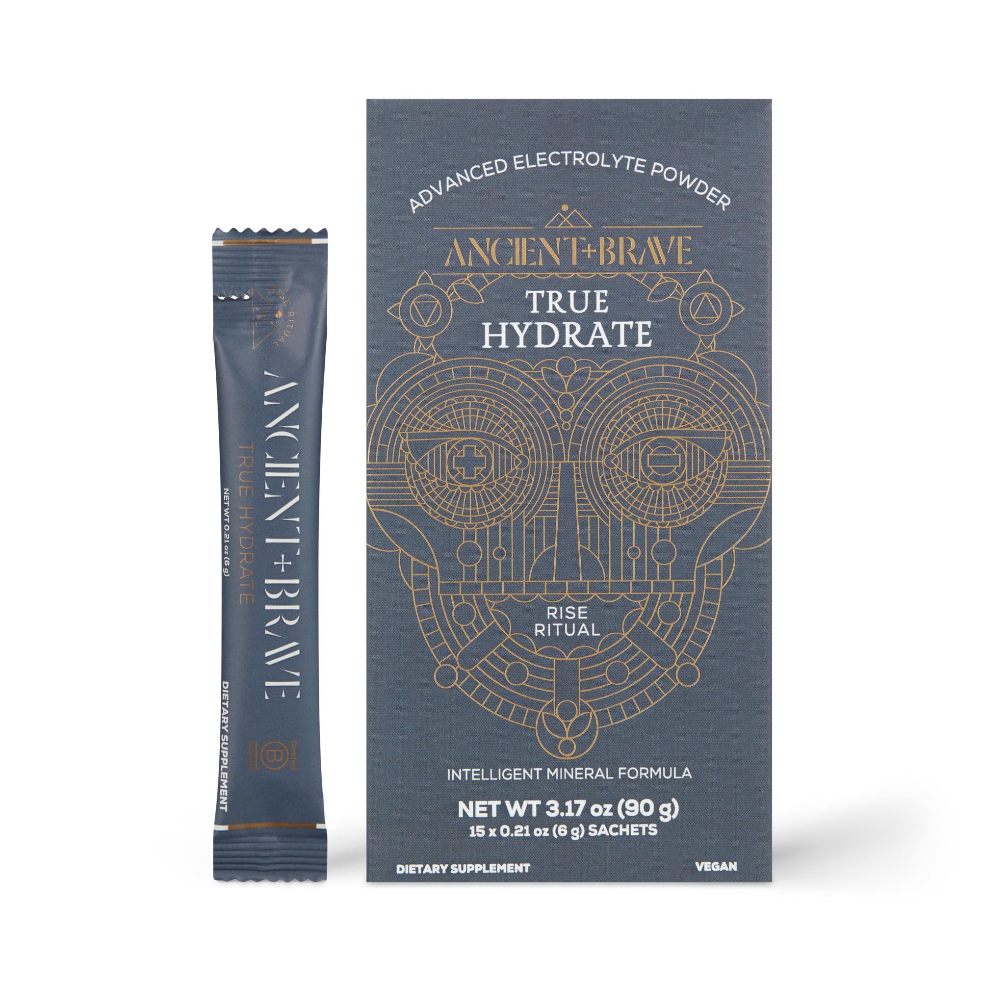 Ancient + Brave True Hydration Powder 15 x 6g Coconut Water Unflavored Electrolytes Instant Hydration Blend Supports Energy and Recovery Vegan Electrolyte Powder Daily Wellness Sachets (90g)