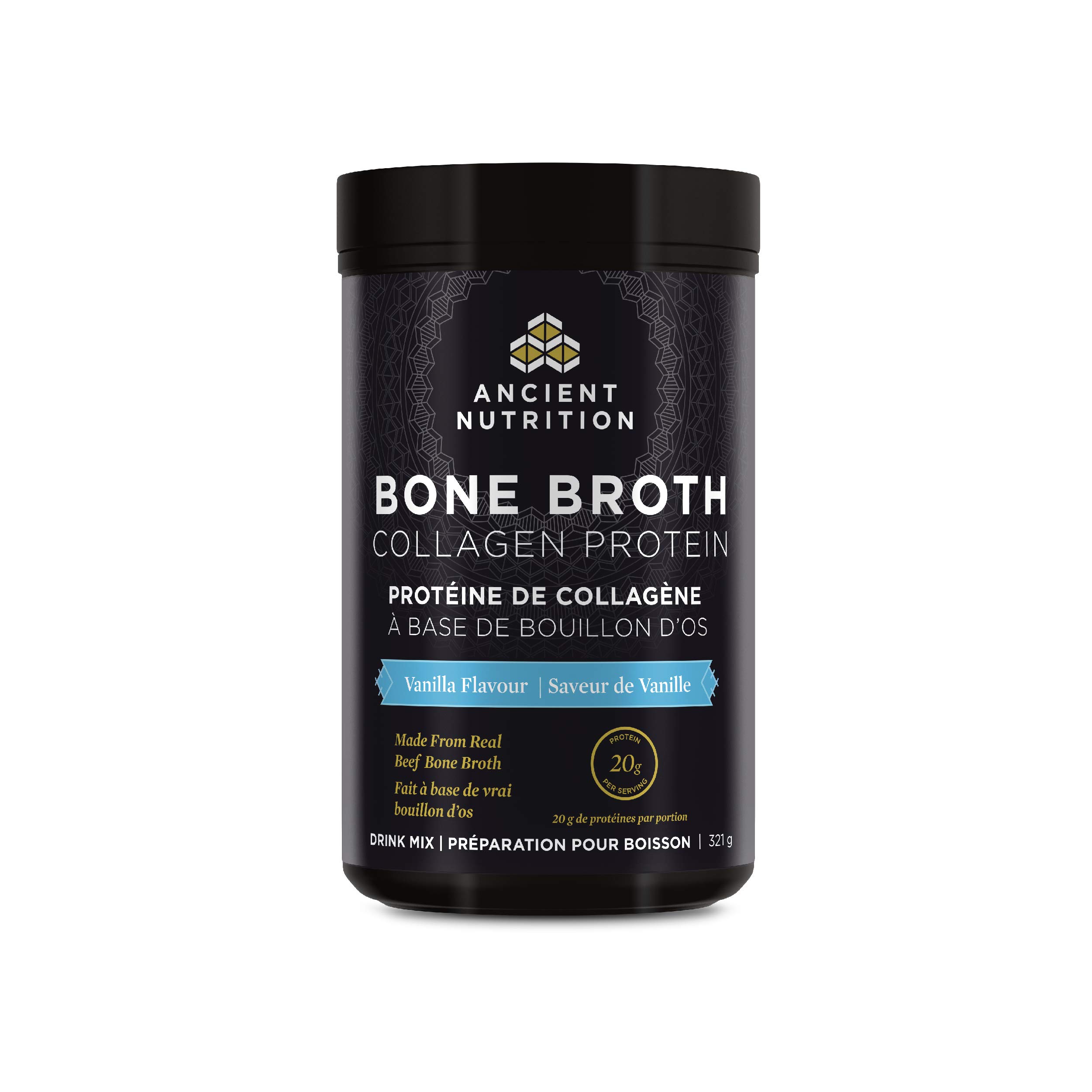 OUR ANCIENT NUTRITION PROMISE – Not satisfied? Let us know and we’ll make it right for you!*. CLEAN & PURE SOURCES – Made from real beef bone broth to provide quality nutrients that will fuel your body while being free from growth hormones and chemicals. Sourced exclusively from pasture-raised cows from South America. BURSTING WITH BENEFITS - Every scoop contains powerful nutrients including collagen, gelatin and key minerals often missing from the diet. These nutrients support joint health, gut health and skin health. 20 GRAMS PROTEIN, 90 CALORIES - Friendly for almost any diet or lifestyle. It’s Paleo-friendly, and made without dairy, soy and gluten. Contains 20 grams of highly-absorbable protein, 0 carbs and 90 calories per serving. HYDROLYZED COLLAGEN - Every scoop of deliciously flavoured vanilla protein powder features collagen types I and III from high-quality food sources. Bone Broth Collagen Protein is free from common allergens, making it an ideal protein source for those sensitive to dairy, grains, eggs, nuts and legumes.