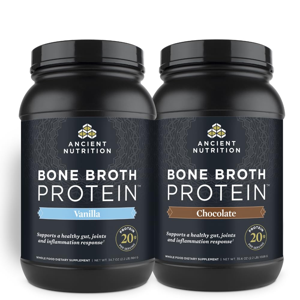 Bone Broth Protein Powder, Chocolate, 40 Servings Bone Broth Protein Powder, Vanilla, 40 Servings by Ancient Nutrition