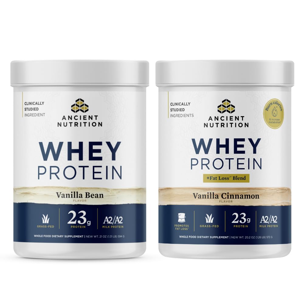 Ancient Nutrition Grass-fed Whey Protein Powder, Vanilla Bean, 20 Servings Grass-fed Whey Fat Loss Protein Powder, Vanilla Cinnamon, 18 Servings