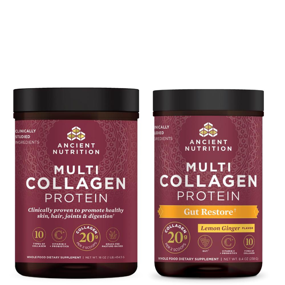 Multi Collagen Protein Powder, Unflavored, 45 Servings Multi Collagen Protein Powder, Gut Restore, 20 Servings by Ancient Nutrition