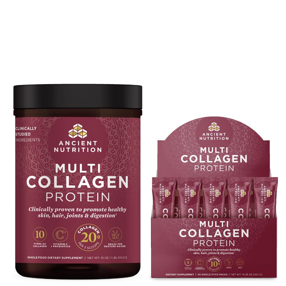 Multi Collagen Protein Powder, Unflavored, 45 Servings Multi Collagen Protein Powder Packets, Unflavored, 40 Packets by Ancient Nutrition