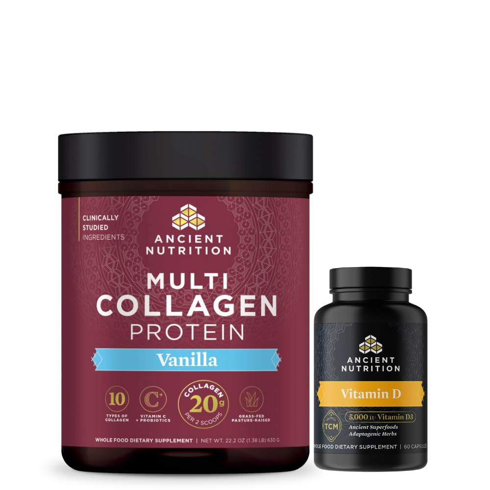 Ancient Nutrition Multi Collagen Protein Powder, Vanilla, 60 Servings Vitamin D Capsules, 60 Count.