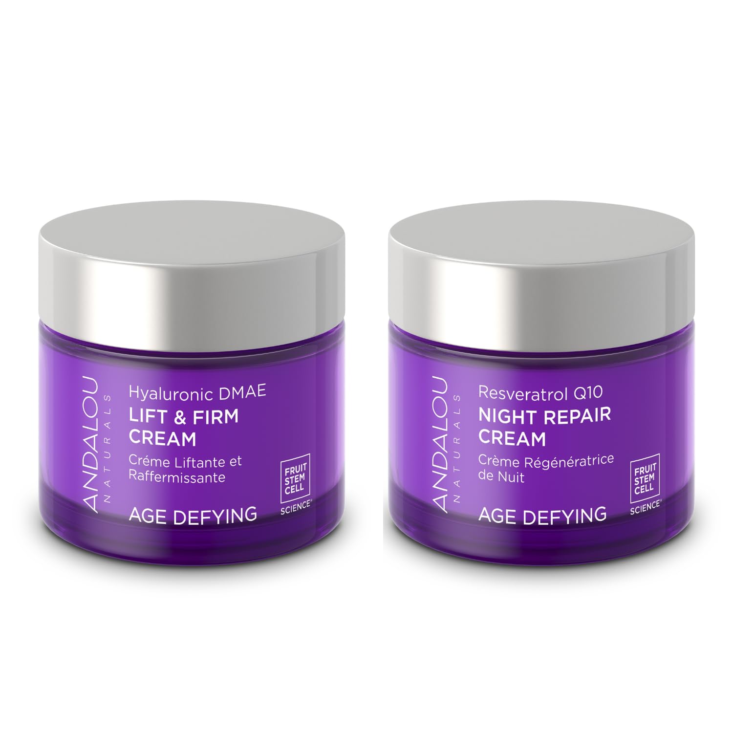 Andalou Naturals Hyaluronic DMAE lift and firm cream, Andalou Naturals Fruit Stem Cell Science renews skin at the cellular level, blending nature and knowledge for visible age Defying results. Fruit Stem Cell complex, DMAE, and hyaluronic acid join forces for a visible face lift. Together, these age-defying bioactives help diminish the appearance of fine lines and wrinkles, fade hyperpigmentation for even skin tone, and improve overall texture for a visibly lifted, firmer, more youthful complexion. Fruit stem cell complex and resveratrol CoQ10, super antioxidants, boost dermal vitality as goji glycopeptides uplift tone and texture overnight for velvety soft skin with the appearance of fewer fine lines and wrinkles and a rejuvenated complexion. Aloe Barbadensis Leaf Juice , Purified Water (Aqua), Dicaprylyl Carbonate, Stearyl Alcohol, Linum Usitatissimum (Flax) Seed Oil , Cetyl Alcohol, Ethylhexyl Palmitate, Glyceryl Stearate, Fruit Stem Cells (Malus Domestica, Solar Vitis) and BioActive 8 Berry Complex , Theobroma Cacao (Cocoa) Seed Butter , Allantoin, Resveratrol, Ubiquinone (CoQ10), Hydrolyzed Rice Protein, Sodium Hyaluronate, Lycium Barbarum (Goji) Fruit Extract, Fagus Sylvatica (Beech) Bud Extract, Tocopherol, Magnesium Ascorbyl Phosphate (Vitamin C), Borago Officinalis (Borage) Seed Oil , Persea Gratissima (Avocado) Fruit Oil , Rosa Canina (Rosehip) Fruit Oil , Oenothera Biennis (Evening Primrose) Oil , Olive Squalane, Camellia Sinensis (White Tea) Leaf Extract †, Aspalathus Linearis (Rooibos) Extract †, Hibiscus Sabdariffa Flower Extract †, Riboflavin, Phenethyl Alcohol, Ethylhexylglycerin, Vanilla Isolates, Symphytum Officinale (Comfrey) Extract Certified Organic Ingredients †Fair Trade IngredientsFruit Stem Cell Science: Every Andalou Natural's product—including masks, creams, serums, moisturizers, cleansers, and toners—use nature's antioxidant defense solution to protect and support healthy skin and hair. Ingredients From Nature: We support Superior Source Ingredient Standards and only use ingredients that are organic, non-GMO, gluten free, sustainable, fair trade, cruelty free, and nature-derived. Age Defying, Nature Inspired: Andalou Naturals Age Defying skincare products help hydrate dry skin and fight fine lines and wrinkles with restorative antioxidants. Use as directed to support a youthful look. Age Defying Hyaluronic Dmae Moisturizer: Perfect for dry, dull, flaking, and prematurely aging skin, our Hyaluronic DMAE Lift and Firm Cream helps support more even, smoother, younger looking skin. RESTORE YOUTHFUL RADIANCE: Andalou Naturals Night Cream diminishes fine lines and wrinkles, revealing velvety soft skin and a rejuvenated complexion. Experience the confidence that comes with a youthful, glowing complexion.