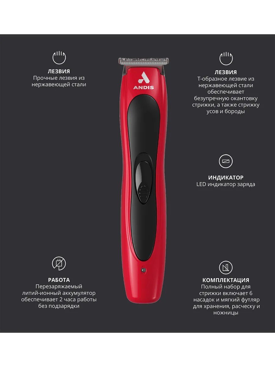 Триммер для стрижки волос Andis Versa TRIM, аккум/сетевая, 6 насадок.