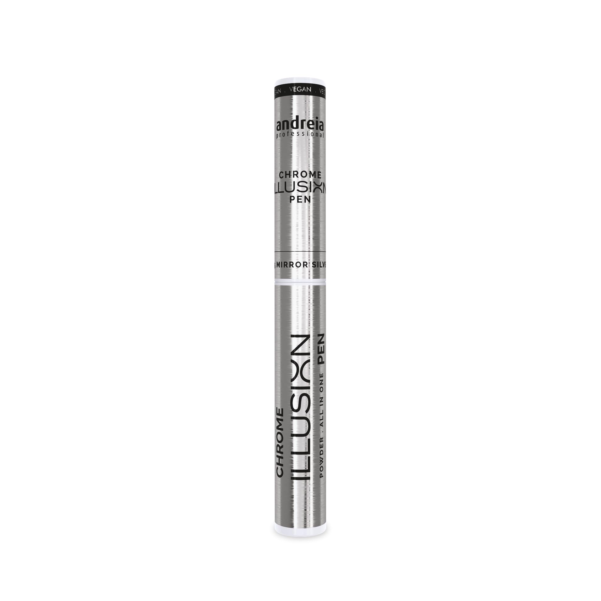 Made in Portugal. 100 vegan formula: Conscious of our impact on the environment and the well-being of our customers, Andreia Professional proudly presents a 100 vegan formula. You can achieve glamorous nails without guilt. The Chrome Illusion Pen revolutionizes nail art by combining powder and applicator in one easy-to-use pen. Whether you're a seasoned nail tech or an avid DIYer, you'll appreciate the consistent and professional results. This all-in-one gem offers unparalleled convenience, quick application and fascinating chrome finishes, making it an absolute must for your nail art collection. Introducing the Chrome Illusion Pen: Step up your nail game with ease and elegance!.Andreia Professional Chrome Illusion Pen 0,5 gr 05 Spiegel ZilverGemaakt in Portugal. 100 veganistische formule: bewust van onze impact op het milieu en het welzijn van onze klanten, presenteert Andreia Professional met trots een 100 veganistische formule. Je kunt glamoureuze nagels zonder schuldgevoel bereiken. De Chrome Illusion Pen zorgt voor een revolutie in nail art door poeder en applicator te combineren in één gebruiksvriendelijke pen. Of je nu een doorgewinterde nageltechnologie bent of een enthousiaste doe-het-zelver, je zult de consistente en professionele resultaten waarderen. Dit alles-in-één juweeltje biedt ongeëvenaard gemak, snelle applicatie en fascinerende chromen afwerkingen, waardoor het een absolute must is voor je nail art collectie. Introductie van de Chrome Illusion Pen: verhoog je nagelspel met gemak en elegantie!.