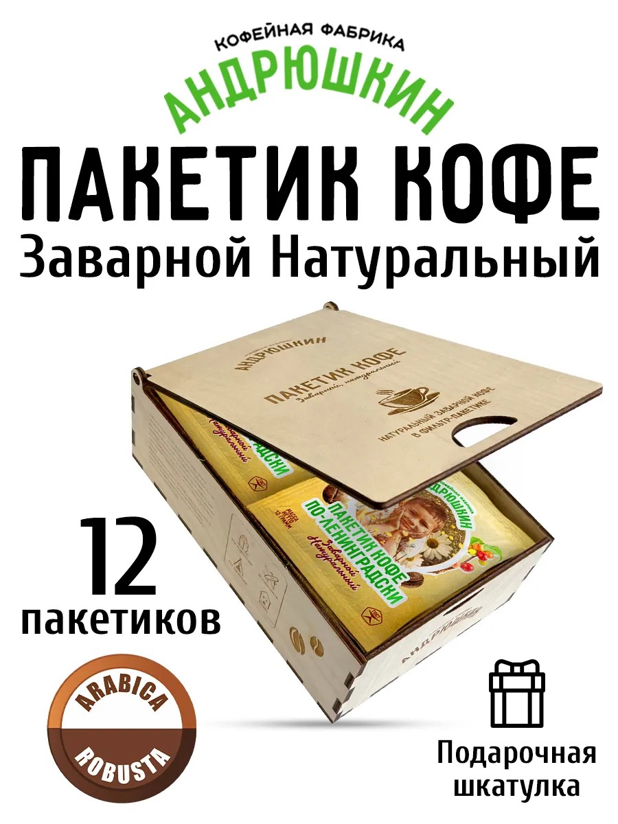 АНДРЮШКИН Кофе Арабика-Робуста в пакетике 12 шт в шкатулке на подарок