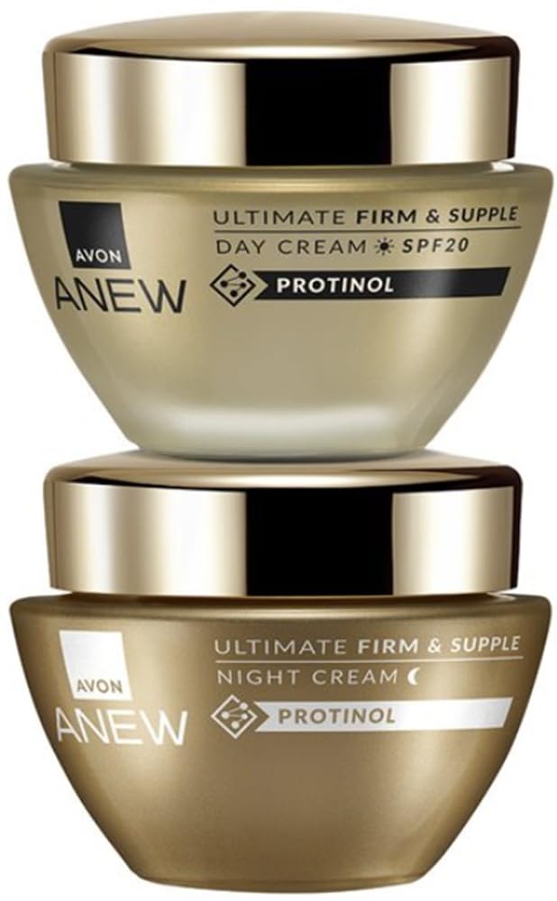 Looking for the best anti-ageing solution that delivers firmer, smoother-looking skin? You've found it in this powerful, Protinol packed Anew Ultimate Day & Night Cream Duo! Skincare upgrade? Undoubtedly... 2-piece set contains: 1 x Anew Ultimate Firm & Supple Day Cream SPF20 50ml. 1 x Anew Ultimate Firm & Supple Night Cream 50ml. How to use it: Day cream: Apply to your face and neck every morning after cleansing. Night cream: Every evening, gently smooth over cleansed face and neck. NOTE: The date on any beauty product is the manufacturing date. It is not the sell by or use by date. The use by date is signified by the open jar symbol with the number of 24m, 12m, 6m, 3m. As we do not know when the product will be open, is it advisable to mark the date on the product when you first open it and use within the specified months. SAFETY WARNING For External Use Only