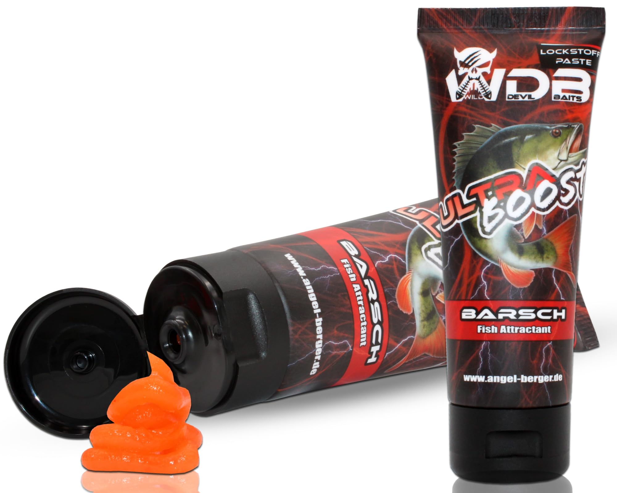 With our new Ultra Boost pastes for predatory fish, we have created the opportunity for every predatory fish angler to give their artificial or natural bait a certain extra boost. Thanks to the dosing tube, they can be applied precisely to the respective bait and maintain the corresponding scent directly on the bait for several hours. For particularly difficult days, an absolute "must" for all modern predatory fish anglers. Our Ultra Boost pastes are 100 made in Germany. The range of applications is enormous. Thus, this lure paste can be applied to wobblers, rubber fish, even flashers, swimbaits, jerkbaits, crabs or natural baits. Contents: 75 mlDosing tube: Thanks to the 75 ml dosing tube, the paste can be precisely applied to the respective bait. For different baits: The range of application is enormous. Thus, this lure paste can be applied to wobblers, rubber fish, even blinkers, swimbaits, jerkbaits, crabs or natural baits. MADE IN GERMANY: Our Ultra Boost pastes are 100 manufactured in Germany. Predator angler: On particularly difficult days, an absolute "must" for every modern predatory fish angler. Intense odor: The paste remains directly on the bait for several hours. Avec nos nouvelles pâtes Ultra Boost pour poissons prédateurs, nous avons créé pour chaque pêcheur de poissons carnassiers la possibilité de donner à son leurre artificiel ou leurre naturel une certaine stimulation supplémentaire. Grâce au tube de dosage, ils peuvent être appliqués avec précision sur l'appât respectif et maintiennent l'odeur correspondante directement sur l'appât pendant plusieurs heures. Pour les jours particulièrement difficiles, un « must » absolu pour tous les pêcheurs de poissons carnassiers modernes. Nos pâtes Ultra Boost sont fabriquées à 100 en Allemagne. Le champ d'application est énorme. Ainsi, cette pâte de leurre peut être appliquée sur les wobblers, les poissons en caoutchouc, même les clignotants, les swimbaits, les jerkbaits, les crabes ou les appâts naturels. Contenance : 75 mlTube de dosage : grâce au tube doseur de 75 ml, la pâte peut être appliquée avec précision sur l'appât respectif. Pour différents appâts : le champ d'application est énorme. Ainsi, cette pâte de leurre peut être appliquée sur les wobblers, les poissons en caoutchouc, même les clignotants, les swimbaits, les jerkbaits, les crabes ou les appâts naturels. FABRIQUÉ EN ALLEMAGNE : nos pâtes Ultra Boost sont fabriquées à 100 en Allemagne. Pêcheur prédateur : lors des journées particulièrement difficiles, un « must » absolu pour tout pêcheur de poissons prédateurs modernes. Odeur intense : la pâte tient directement sur l'appât pendant plusieurs heures.