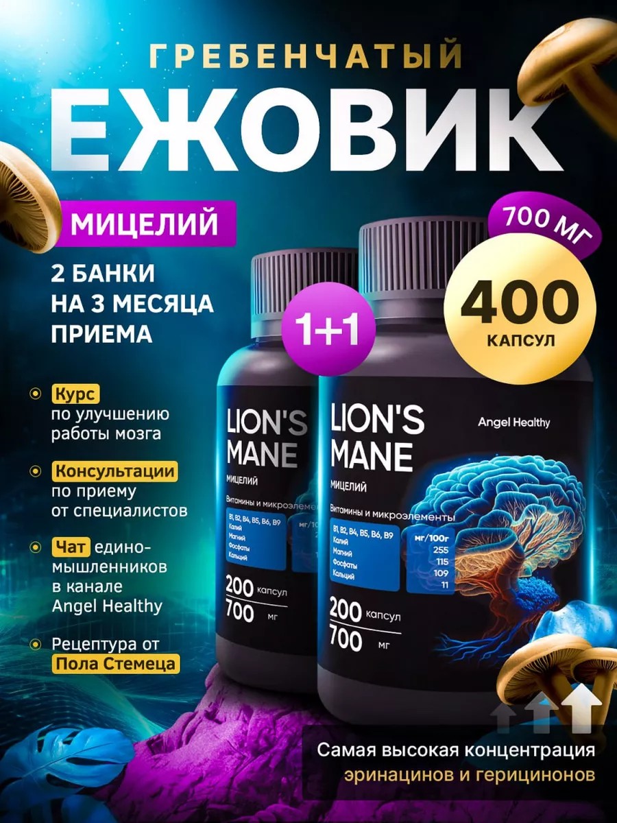 Angel Healthy Ежовик гребенчатый мицелий капсулы 700мг 400 шт
