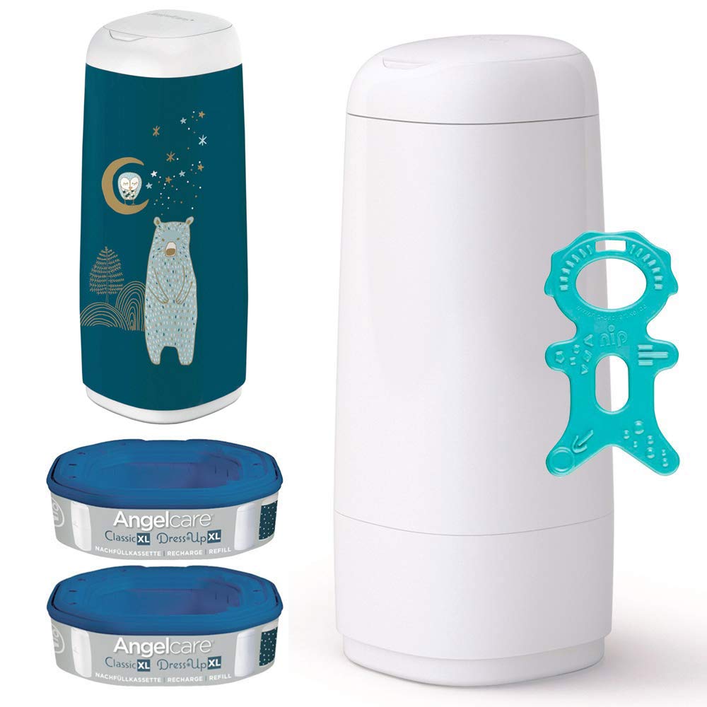 Angelcare Dress-Up XL Starter Set: Diaper pail + 2 refill cassettes + Dress-Up cover XL Snow Bear
