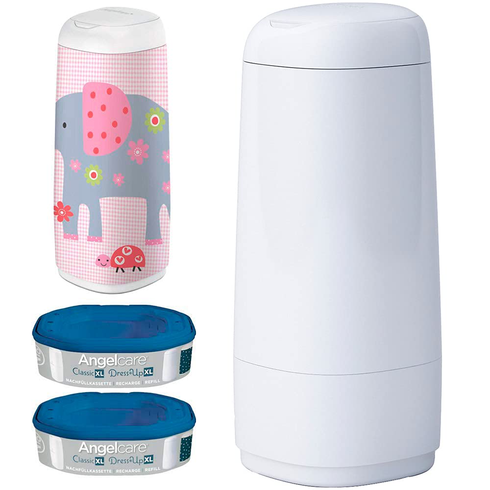 Angelcare Dress-Up XL Starter Set: Diaper pail + 2 refill cassettes + Dress-Up XL cover Elephant Family