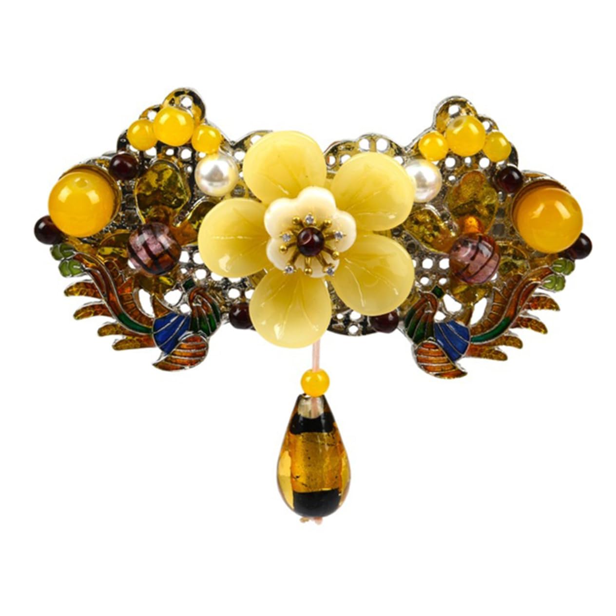 Package Include 1 x spring hair barrette Features -Size: 9.30X9.00X3.50cm 3.65X3.54X1.38 in spring ponytail hair barrette. -Color: Yellow spring ponytail hair clip -Material: Alloy hair clamp - , durable and practical for decoration, match with short, thick and longer hair spring ponytail clip. - Suitable for weddings, birthdays, homecoming, holidays, dinner parties, daily life and so on women hair barrettes. - The unique and vintage design of the ponytail hair barrette makes you more special and elegant, fit for your daily dressing vintage hair barrette. - Suitable for New Year, Valentine's Day, birthday and so on, as a delicate for your lover, family members and more hair barrette. - Hold your hair tightly for convenience, it is lightweight, portable and comfortable to carry ponytail holder clamp. Goods Description wedding hair clip The ponytail hair barrette will help complete tough hairdressing project for you, can be used as hair decorations, it is not easy to loosen or fall off.barrettes for women Meanwhile, it will be an exquisite birthday for your family and female friendsHairpins clasps vintage-- vintage design and excellent workmanship, the hair clips will hold and decorate your hair perfectly. Womens hair clips-- suitable for weddings, birthdays, homecoming, holidays, dinner parties, daily life and so on. Hairpins hair for women-- suitable for a variety of hairstyles for you and to match with your costumes when wearing it. French hair barrettes-- also as a nice for your family and friends, better create your hairstyle as a must-have hair decoration. Vintage hair spring clamp-- gently fix your hair without leaving traces, suitable for hair blow drying, sectioning and styling.