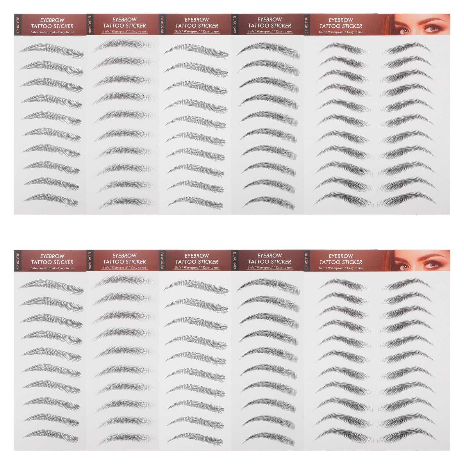 Angoily Lot de 10 Autocollants Sourcils Noirs Effet Poils 3D Transfert d'Eau Imperméable Faux Sourcils pour Femmes Maquillage Naturel et Professionnel