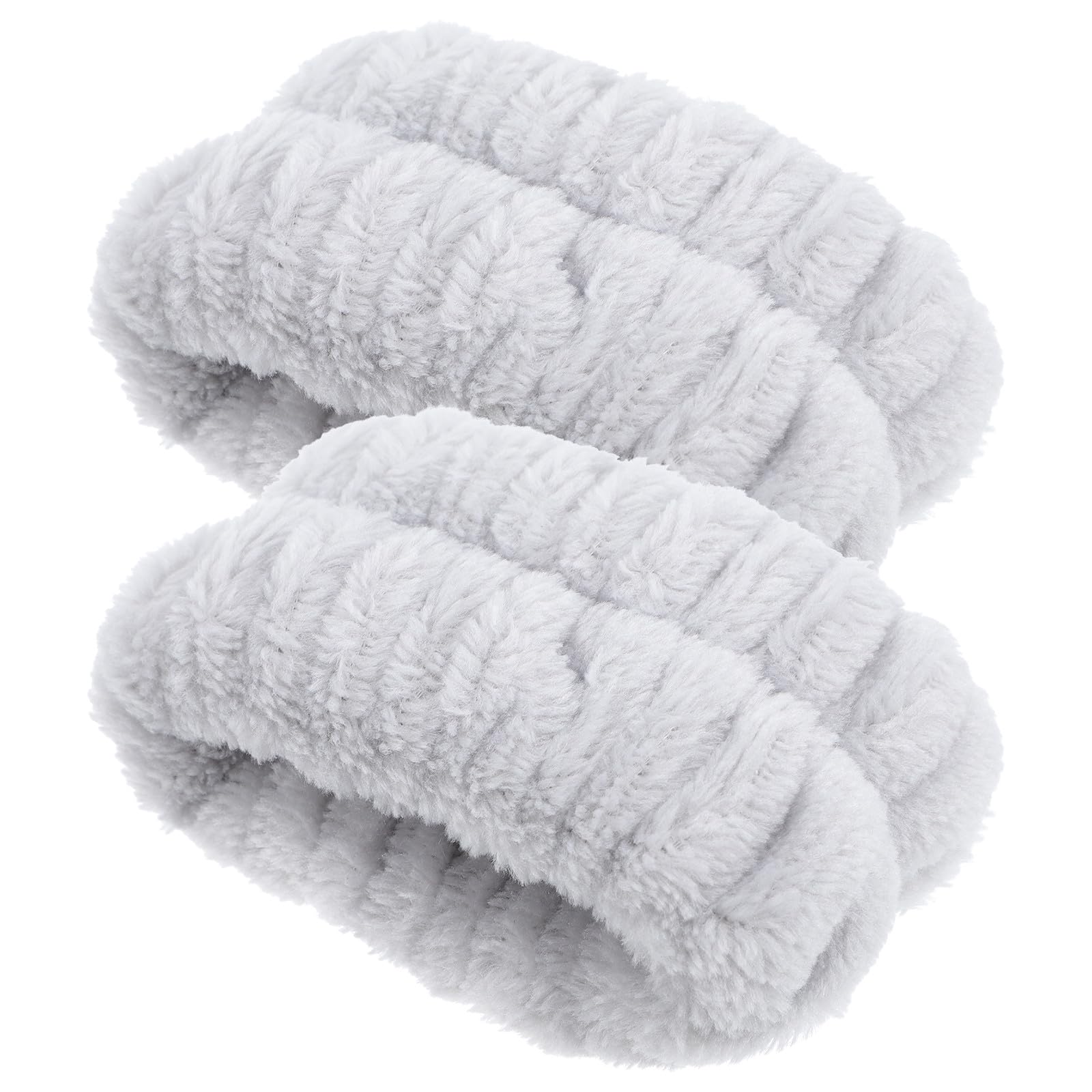 Angoily Lot de 2 Bracelets Absorbants en Flanelle Grise pour Lavage du Visage et Spa, Accessoires Élastiques pour Poignet, pour Maquillage, Yoga et Soins Personnels