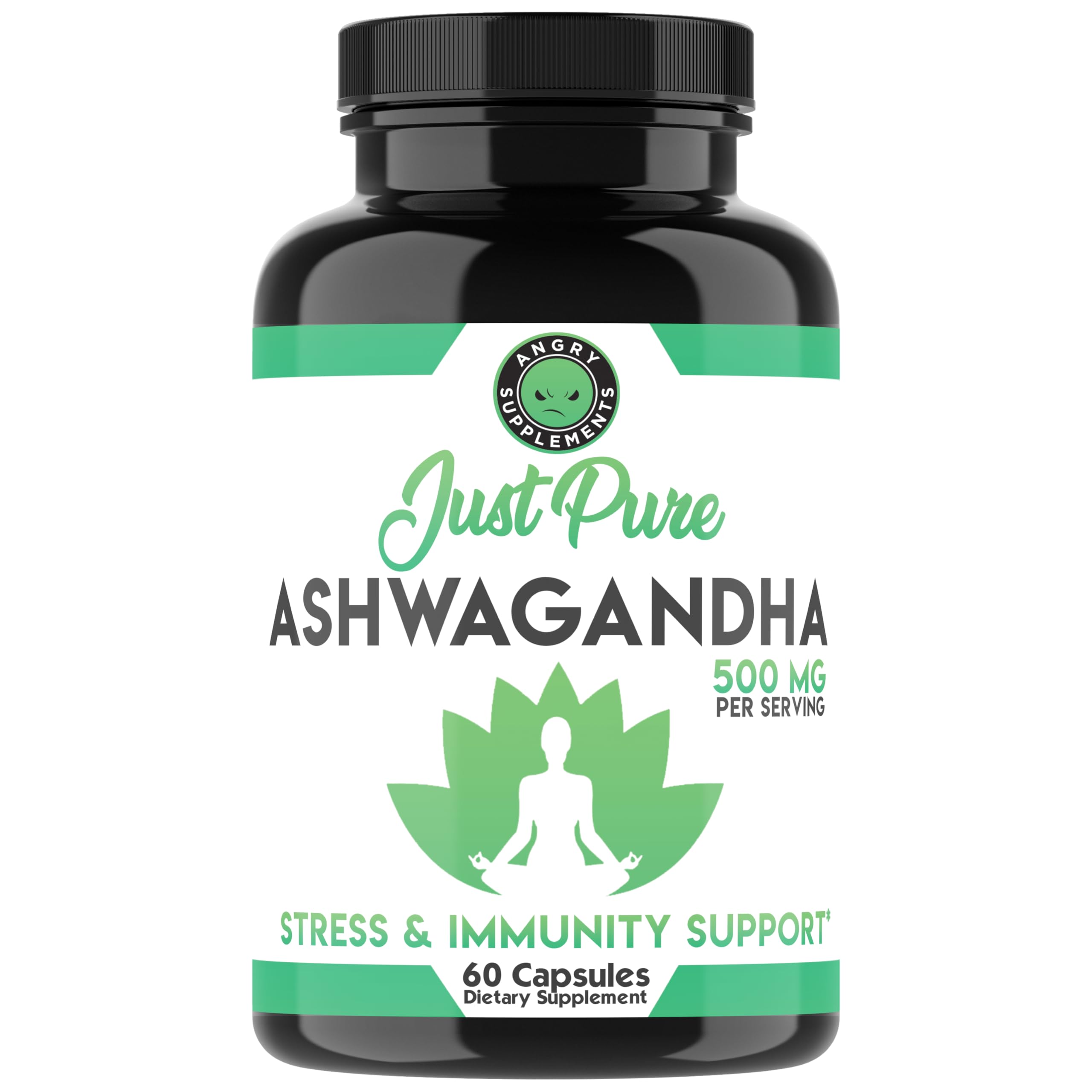 Angry Supplements Just Pure Ashwagandha Root Powder 500mg Ashwa Per Serving 60 Capsules Herbal Immunity & Mood Support for Men and Women (1-Bottle)