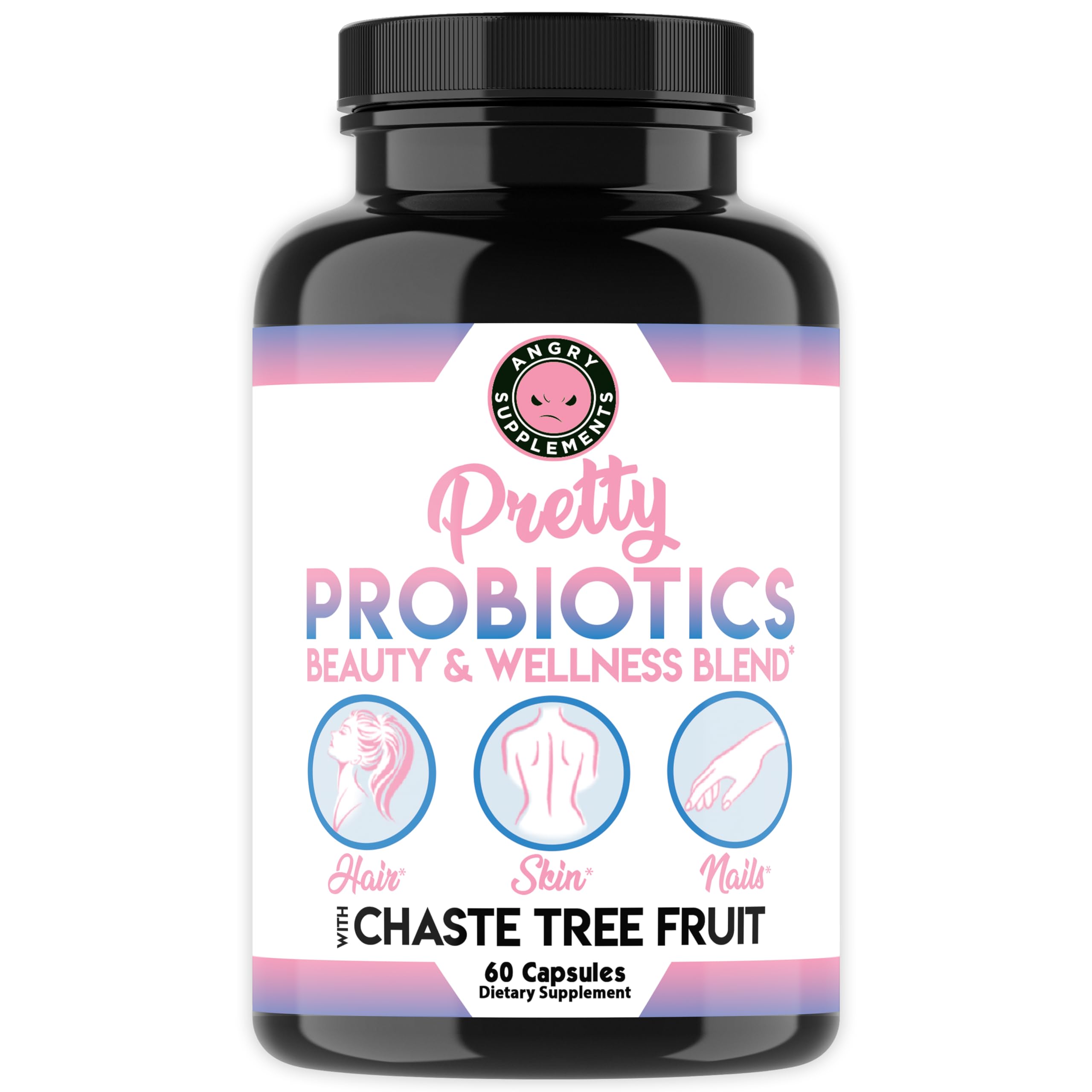 Angry Supplements Pretty Probiotics for Women Beauty & Wellness Blend to Support Hair Skin Nail & Gut Health: Zinc Chaste Tree Fruit Bifidobacterium & Lactobacillus 60 Capsules (1-Bottle)