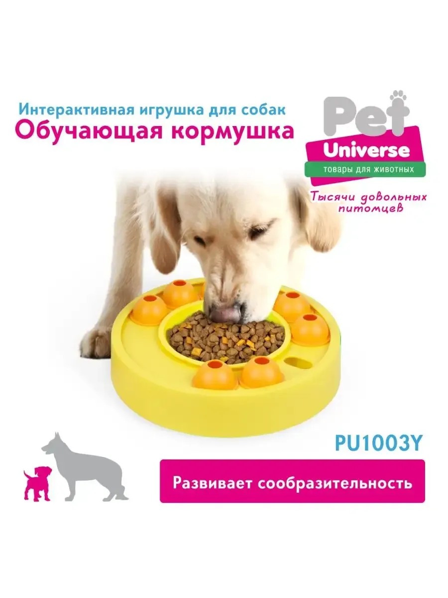 ТМ Pet Universe представляет интерактивную игрушку для собак обучающая кормушка модель PU1003Y цвет желтый. ВИДЕО показывает действие кормушки. Игрушка закрепляет навыки собак и развивает сообразительность. Для того, что бы закрепить необходимые навыки, применяют поощрение. В дрессировке и воспитании собак самое лучшее поощрение – это лакомство. В данной игрушке реализован именно такой подход. Запомни действие - получи лакомство. Найди, открой и съешь. Это увлекательная игра. Чтобы получить любимое лакомство, ваш питомец должен запомнить определенную последовательность действий, это способствует развитию сообразительности и удовлетворяет природные инстинкты. С нашей игрушкой собака всегда будет в форме и не будет переедать. Система порционной подачи корма позволяет поглощать пищу, не проглатывая ее за один раз. Это помогает избежать многих медицинских проблем, например, ожирения из-за переедания. Игрушка обладает системой медленного кормления, при которой за один раз потребляются меньшие порции пищи. Это позволяет корму более эффективно перевариваться. Игрушка еще и средство от скуки. Игрушка обеспечивает потребности в поиске и добыче еды. Это простой способ разнообразить жизнь вашего питомца, развлечь его и занять на некоторое время.Кормушка дозатор корма для собак и кошек PU1003Y - это уникальное устройство, которое позволит вам легко и удобно кормить ваших питомцев. Больше не нужно беспокоиться о том, что вы забыли покормить своего четвероногого друга - кормушка дозатор справится с этой задачей за вас. Эта кормушка подходит как для собак, так и для кошек, идеально подходит для домашних животных разных пород и размеров. Благодаря удобному дизайну и прочному материалу, из которого изготовлена кормушка, она прослужит вам долгие годы. Инновационный дозатор позволяет контролировать количество корма, которое питомец потребляет, что особенно важно для животных, страдающих от лишнего веса.