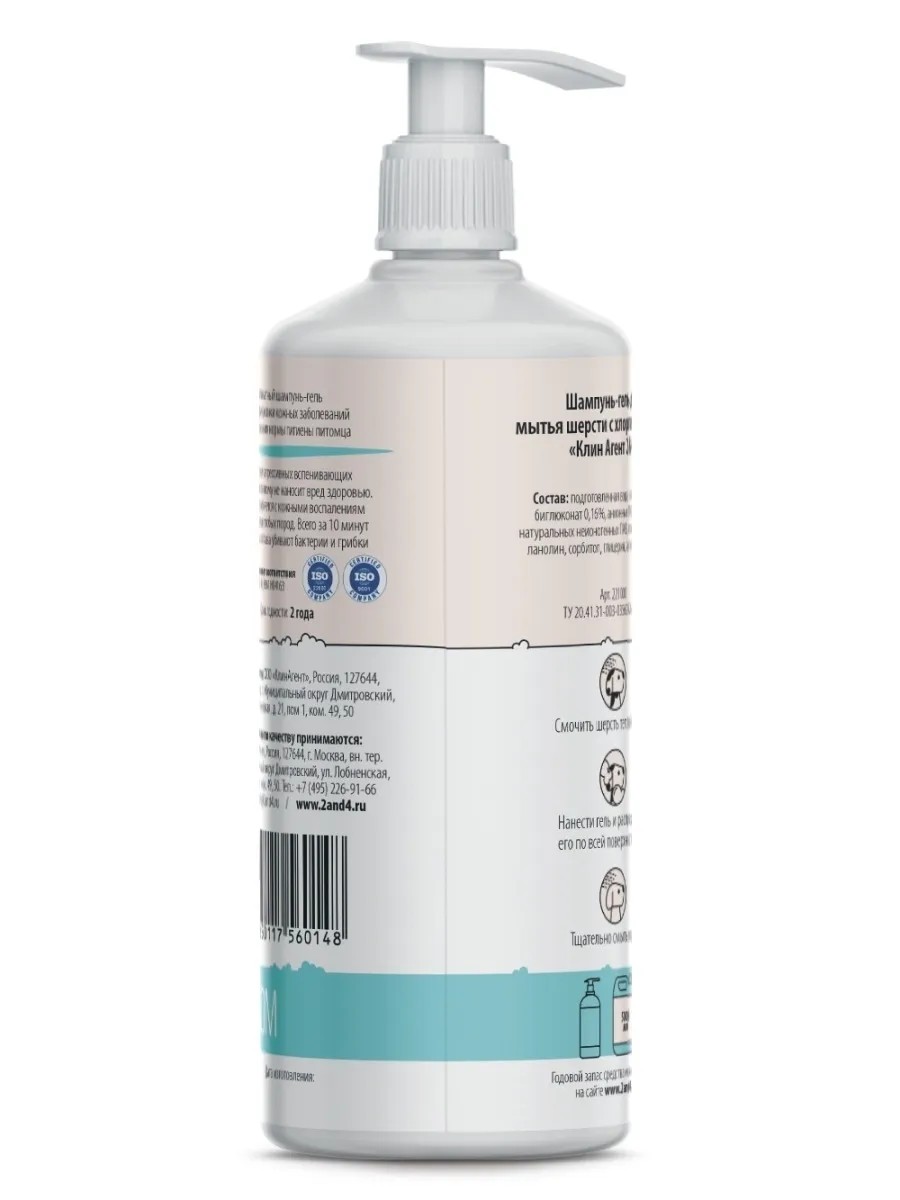 Содержание хлоргексидина составляет 0,16% или 1600 ppm, что безопасно для дезинфекции кожи без риска для здоровья питомца. Дополнительные компоненты шампуня увлажняют и смягчают кожу, делая его еще более эффективным.