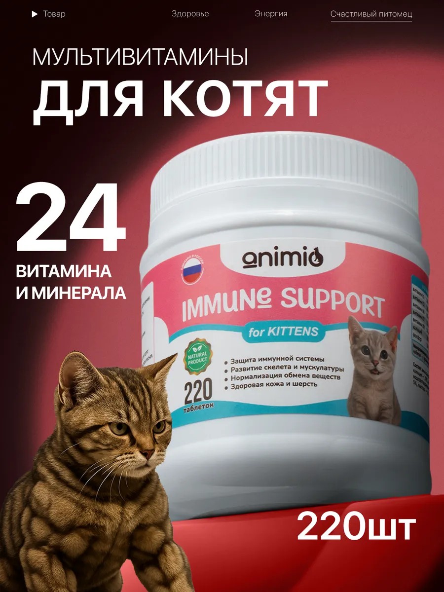 Котенок – это не просто крохотный комочек счастья, но и настоящий чемпион роста и развития, нуждающийся в индивидуальном подходе к питанию. ANIMIO разработал мультивитаминный комплекс для поддержки организма растущих питомцев с учетом их высоких потребностей в питательных элементах.