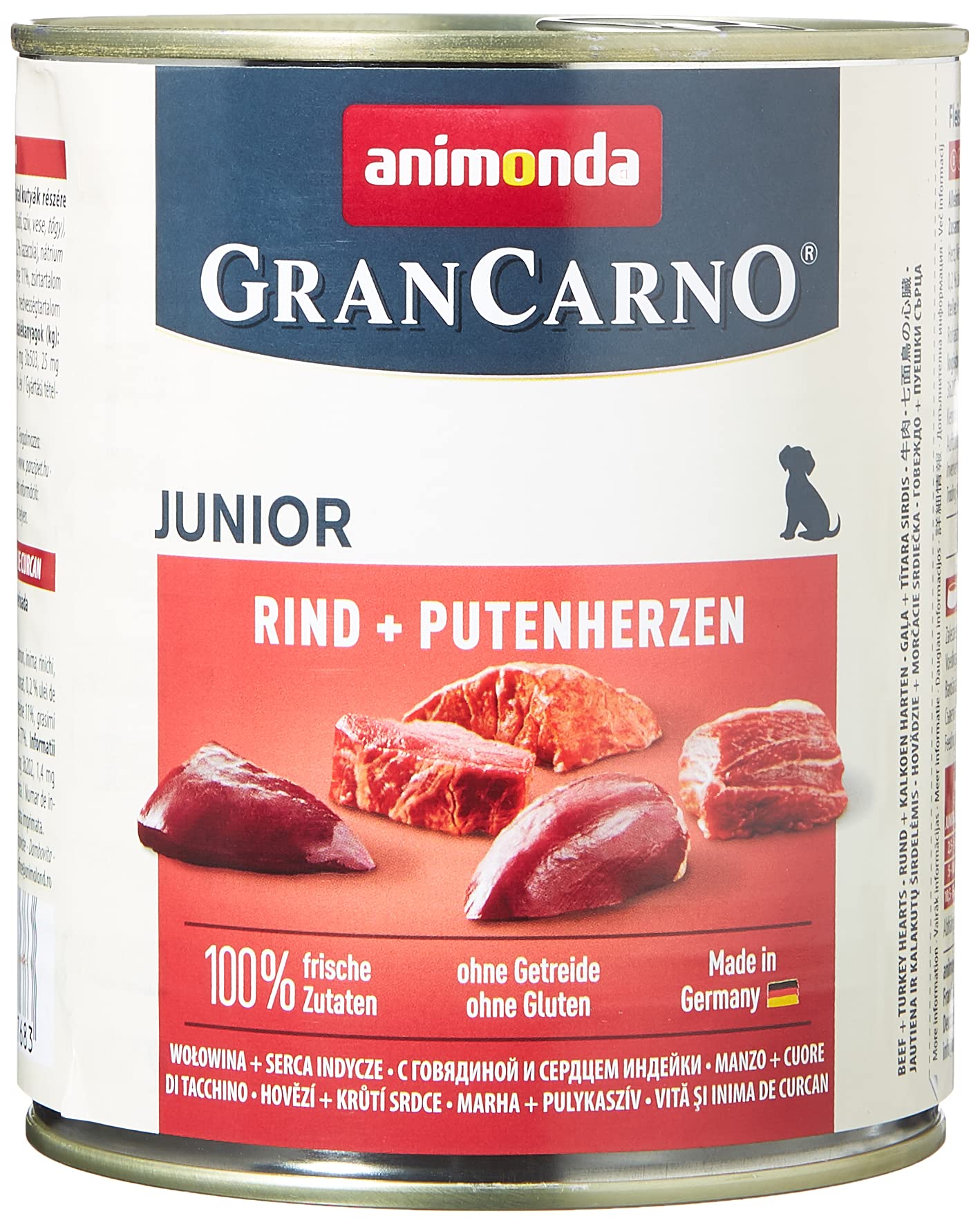 Animonda grancarno dog food junior wet feed for dogs in growth beef + turkey hearts 6 x 800 g single beef + turkey heart 800 g (6 Pack)