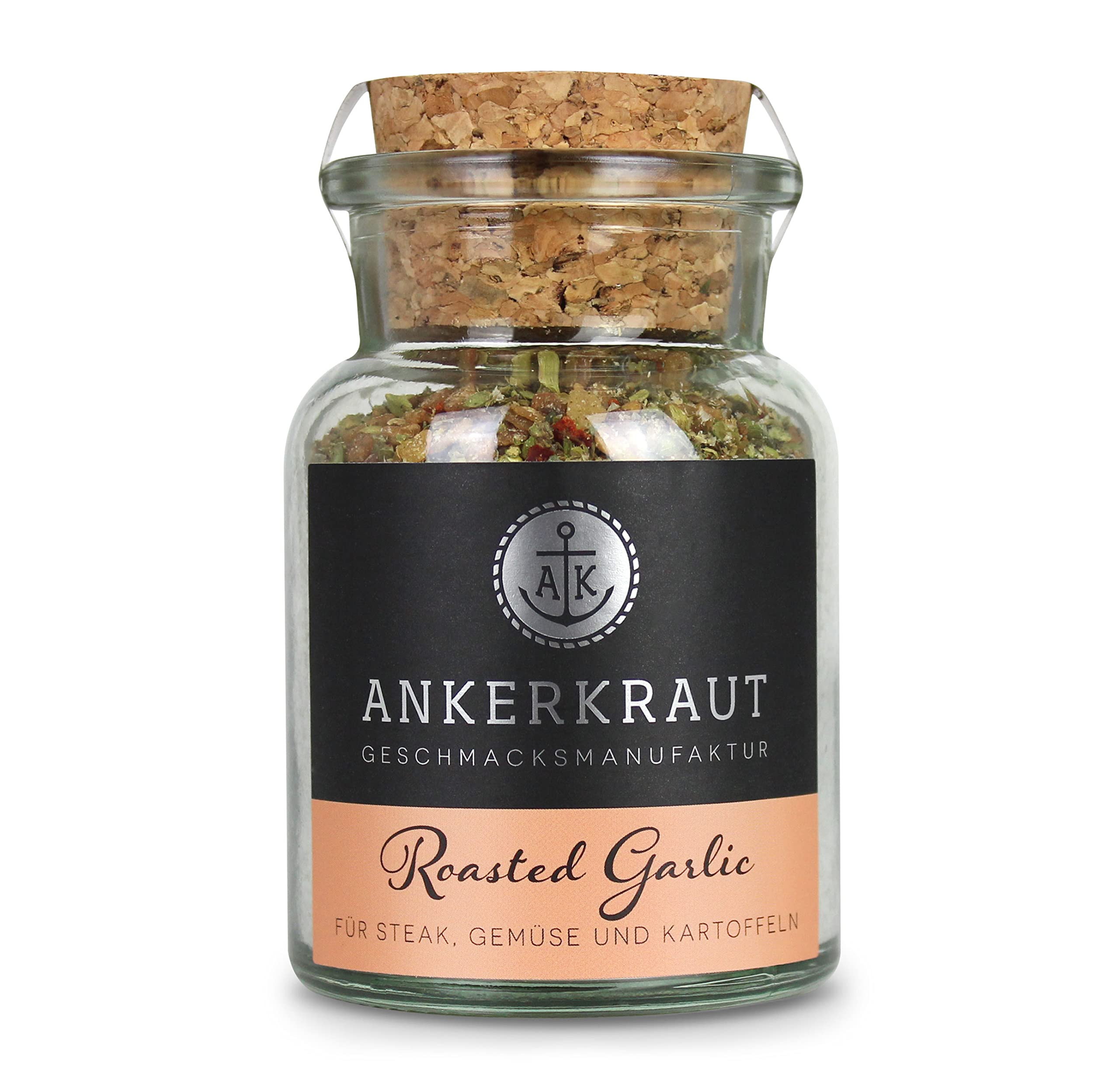We love garlic, do you too? In this rub, we've used flavorful roasted garlic to bring you closer to the white tubule in a whole new way. With our Roasted Garlic rub, you can also marinate and bake: whether meat, vegetables, or potatoes - the aroma of garlic is truly always there! This is in fact our only rub with roasted garlic and it tastes best on a delicious steak or as a highlight on roasted potatoes. INGREDIENTS roasted garlic (48 garlic, sunflower oil), sea salt, cane sugar, garlic, onion, oregano, red chili, black pepper, thyme, marjoram[Gift Idea] Our roasted garlic spice not only convinces with its taste, but will also be a real eye-catcher in any kitchen. Just give something beautiful, give love, give anchor owl!. [Delicious and easy] The decent garlic aroma must be selected: with our quality, this spice is particularly good on your steak or as a highlight on fried potatoes. Try it!. [Best quality] Without artificial flavor enhancers and colors. The ingredients are freshly purchased in the classic and elegant cork jars and shipped to customers after a very short storage time: 1 roasted garlic of 95 g in a cork glass. Suitable for: This spice mix is a real all-rounder. With the roasted garlic, you can marinate your potatoes, meat and vegetables or cook them as a finisher. [Flavor] Do you also love garlic? This rub is made with roasted garlic, pepper, chili, and other flavorful ingredients. Nous aimons l'ail, vous aussi ? Dans ce rub, nous avons utilisé l'ail torréfié de goût pour vous rapprocher de la tubulure blanche d'une toute nouvelle manière. Avec notre rôtissoire Roasted Garlic vous pouvez aussi mariner et faire des gâteaux : que ce soit de la viande, des légumes ou des pommes de terre - L'arôme de l'ail est vraiment toujours ! C'est en effet notre seul frottement avec de l'ail torréfié et il a un meilleur goût sur un délicieux steak ou comme point fort sur les pommes de terre rôties. INGRÉDIENTS ail rôti (48 ail, huile de tournesol), sel de mer, sucre de canne, ail, oignon, origan, rouge chili, poivre noir, thym, marjolaine[Idée de cadeau] Notre épice garlic rôtie convainc non seulement par le goût, mais elle ne passera pas inaperçue dans n'importe quelle cuisine. Offrez simplement quelque chose de beau, offrez de l'amour, offrez de la chouette d'ancre !. [Délicieux et facile] L'arôme d'ail décent doit être sélectionné : avec notre qualité, cette épice est particulièrement bonne sur votre steak ou comme point culminant sur les pommes de terre frites. Essayez-le !. [Meilleure qualité] Sans exhausteurs de goût et colorants artificiels. Les ingrédients sont fraîchement achetés dans les bocaux en liège classiques et élégants et expédiés aux clients après un très court temps de stockage : 1 garlic rôti de 95 g dans un verre de bouchon. Convient pour : ce mélange d'épices est un véritable polyvalent. Avec le garlic rôti, vous pouvez mariner vos pommes de terre, viandes et légumes ou les faire cuire comme finisseur. [Saveur] Aimez-vous l'ail aussi? Ce rub est composé d'ail grillé, de poivre, de piment et d'autres ingrédients savoureux.