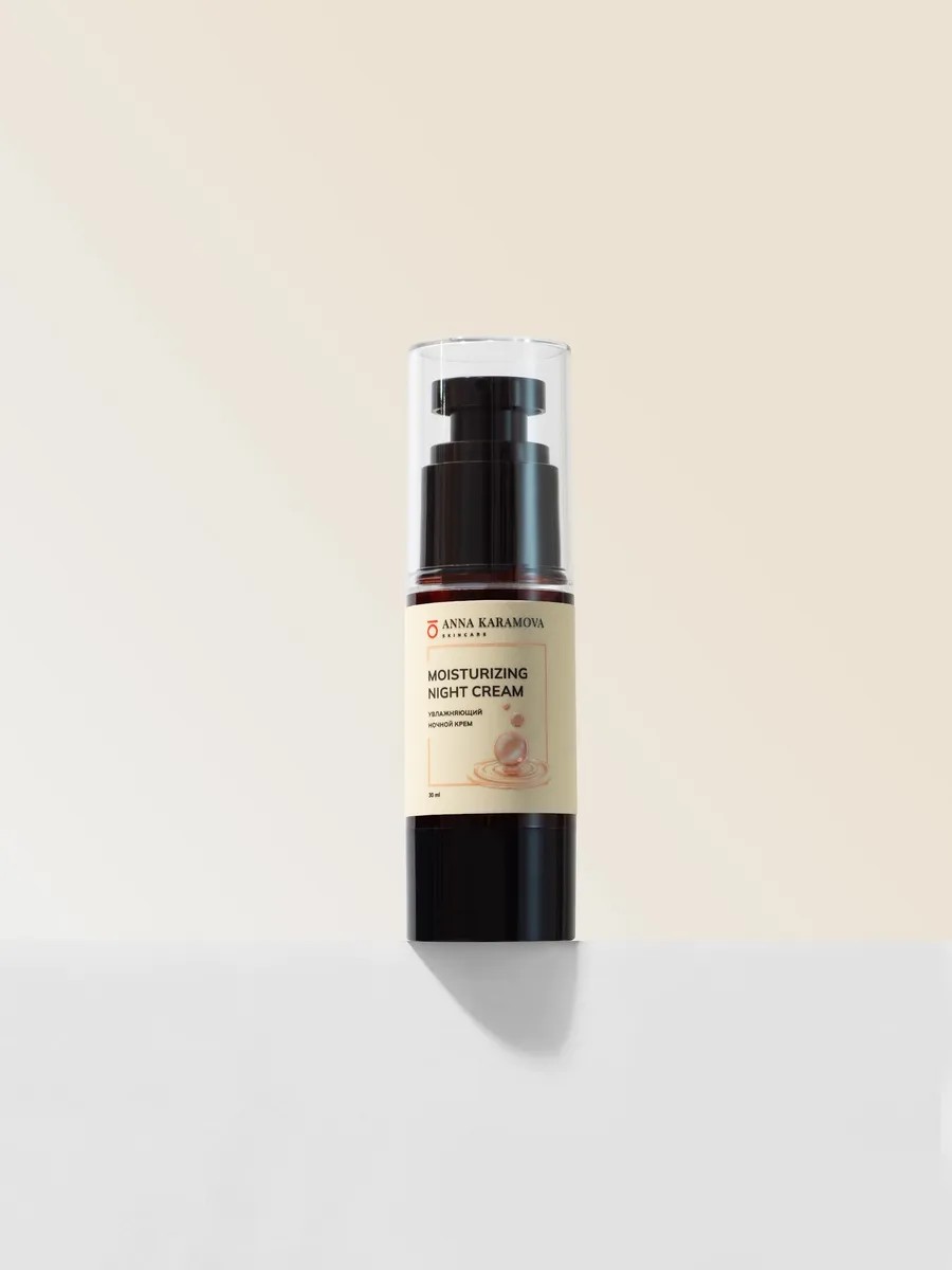 The MOISTURIZING NIGHT CREAM from ANNA KARAMOVA SKIN is designed to protect your skin from harmful environmental factors and provide long-lasting hydration. This care product contains over 50% biologically active ingredients of natural plant origin. These include avocado oil, cocoa butter, and beeswax, whose comedogenic effects on the skin are minimized thanks to a carefully formulated formula developed by technologists, cosmetologists, and Dr. Anna Karamova. This lightweight, enveloping product contains a complex of essential fatty acids for maximum hydration and promotes collagen production, which helps keep skin youthful, smooth, and healthy, reducing dryness and the appearance of wrinkles. Active ingredients moisturize and protect the skin from excessive sun or frost, nourish it, and impart a natural glow. They don't leave a film on the skin, preventing breakouts, irritation, and inflammation, and minimizing the formation of pimples, blackheads, and age spots. This universal cream moisturizes and soothes, brightens, regenerates, heals, restores, and evens skin tone. It's suitable for all skin types: normal, oily, dry, combination, problematic, and dehydrated. This effective cosmetic product has a firming, rejuvenating, and anti-aging lifting effect. This protective cream will restore and comfort the skin, eliminate signs of fatigue, and leave it looking fresh and firm. This organic cream is suitable for adult women and men, young girls and boys, teenage girls, and pregnant and nursing mothers. To apply to clean skin after washing in the evening or morning: warm a small amount of the care product in your palms, then apply to the skin of the face with light warming movements in the area of the cheeks, forehead and chin along the massage lines.