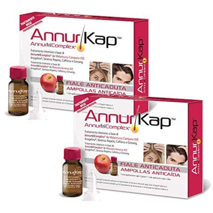 By Annurkap Anti-hair loss ampoules 10 single-dose ampoules of 8 ml: intensive anti-hair loss treatment, based on the exclusive functional principle AnnurtriComplex by Melannurca Campana IGP, developed by the Department of Pharmacy of the Federal University II. Treatment of the months intensive fortifying – energizing, intensive anti-hair loss treatment, based on the exclusive functional principle AnnurtriComplex by Melannurca Campana IGP, developed by the Department of Pharmacy of the Federal University II. Combined with anageline, a precious extract of Sweet White Lupin, Serenoa Repens, Caffeine and Panax Ginseng, life to the formula complex helping to revitalize and provide the hair with new energy, making it stronger, more vital and replenished. The presence of thyme essential oil limits sebaceous secretion, facilitating the absorption of the preparation.Box of 2 boxes of 10 single-dose ampoules. Par Annurkap Ampoules anti-chute 10 ampoules unidoses de 8 ml : traitement intensif anti-chute, basé sur le principe exclusif fonctionnel AnnurtriComplex par Melannurca Campana IGP, développé par le département de pharmacie de l'Université fédérale II. Traitement des mois intensif fortifiant – énergisant, traitement intensif anti-chute, basé sur le principe exclusif fonctionnel AnnurtriComplex de Melannurca Campana IGP, développé par le département de pharmacie de l'Université fédérale II. Associé à l'anageline, un précieux extrait du Lupin Blanc Douce, Serenoa Repens, Caféine et Panax Ginseng, de vie au complexe formulatif aidant à revitaliser et à fournir aux cheveux de nouvelles énergie, les rendant plus forts, plus vitaux et reconstitués. La présence d'huile essentielle de thym limite la sécrétion sébacée, facilitant l'absorption de la préparation.Boîte de 2 boîtes de 10 ampoules unidoses.