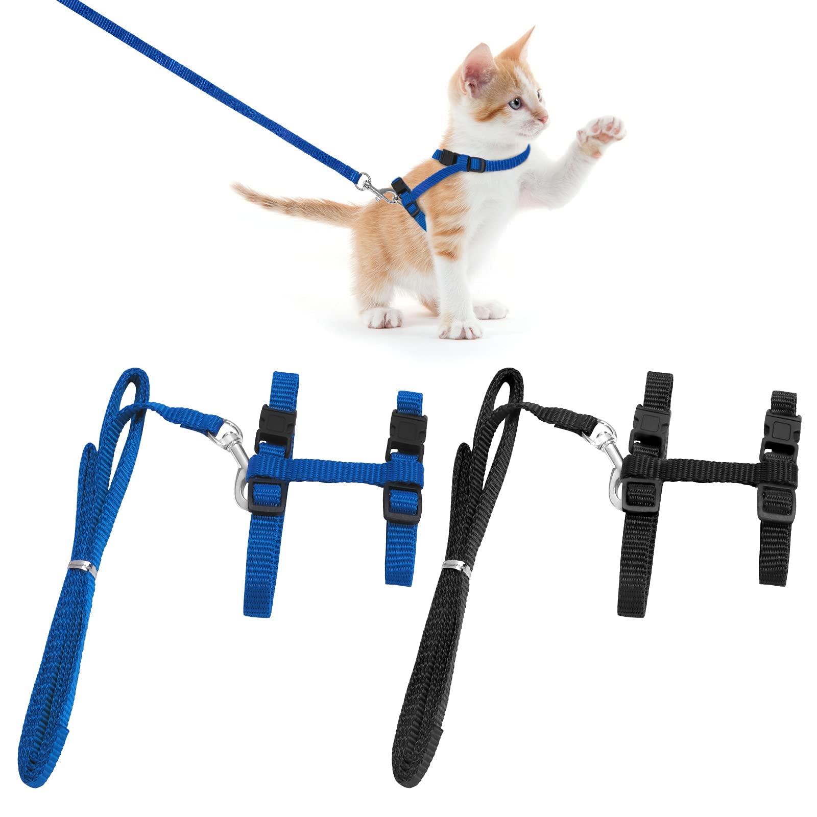 2-part adjustable cat dishes with cat leash, consisting of a bust-nylon cat dishes and a leash.Professional Customer Service: Includes 2 Cat Harness With Leash (Black and Blue).Chest Girth 22-36cm, Neck Girth 18-29cm, Leash Size 120x1cm if you have any problem with products before sale, please feel free to contact us.We always offer professional and satisFactory Customer Service.Wide Application: Cat Harness With Leash very suitible for small Animals, Such as Cats, Puppies, Rabbits, etc. Can be used for daily walking, jogging, airing, hiking, outdoor Leisure Activities, etc. Anti-injury Protection: Attach the robustAnd durable cat lead to the metal clip to your vest, so your Cat can explore the great outdoors safely and freely.The Design of the Cat Harness With Leash Distributes the Pressure of the Rope Evenly Over The Chest and Shoulders to Avoid Choking Or Neck Injuries and Better Protect Your Cat.Adjustable Design: Cat Harness With Leash Escape Proof, H-SHAPE SHOULDER Straps with Adjustable Sliding Buckle, Shoulder Straps and Chest Strap With Safety Buckle, Free To Adjust the Size According to The Chest Circumference to Ensure Comfort and Prevent From Getting Lost DuringOutdoor Activities.High-quality nylon material: The Cat Lead with Harness for Cats is made of high-quality nylon material with good flexibility, wear resistance and bite resistance to prevent pets from biting the transporters. 2-teiliges verstellbares Katzengeschirr mit Katzenleine, bestehend aus einem Büsten-Nylon-Katzengeschirr und einer Leine.Professional customer service: includes 2 cat harness with leash (black and blue). Chest girth 22-36cm, neck girth 18-29cm, leash size 120x1cm If you have any problems with products before or after sale, please feel free to contact us. We always offer professional and satisfactory customer service. Wide application: cat harness with leash very suitable for small animals, such as cats, puppies, rabbits, etc. Can be used for daily walking, jogging, airing, hiking, outdoor leisure activities, etc. Anti-injury protection: attach the robust and durable cat lead to the metal clip to your vest, so your cat can explore the great outdoors safely and freely. The design of the cat harness with leash distributes the pressure of the rope evenly over the chest and shoulders to avoid choking or neck injuries and better protect your cat. Adjustable design: cat harness with leash escape proof, H-shape shoulder straps with adjustable sliding buckle, shoulder straps and chest strap with safety buckle, free to adjust the size according to the chest circumference to ensure comfort and prevent your pet from getting lost during outdoor activities. High-quality nylon material: the cat lead with harness for cats is made of high-quality nylon material with good flexibility, wear resistance and bite resistance to prevent pets from biting the transporter.ansd A8HE 2 adjustable seat belts, Acrylic, Schwarz, Blau