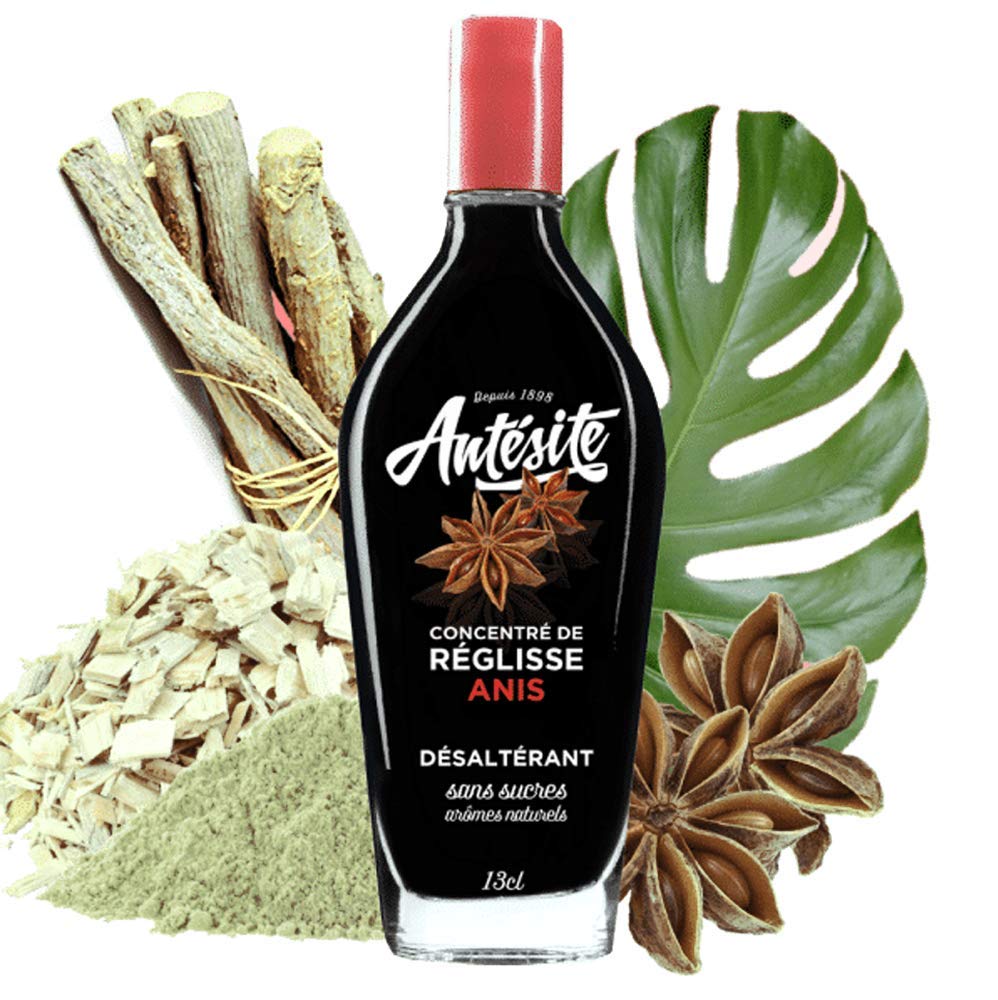 : Licorice, a plant with universally recognized medicinal properties, contributes to the body's balance. It is used for its anti-inflammatory, healing, soothing, and softening properties. Licorice Flavor. For your health, eat at least five fruits and vegetables a day. Contains licorice. People suffering from hypertension should avoid excessive consumption. ANTESITE NOIROT BP 37 38501 VOIRON Ingredients: Water, licorice flavor, natural star anise flavor, natural flavors, gentian extract. P.when('A').execute(function(A) { A.on('a:expander:toggle_description:toggle:collapse', function(data) { window.scroll(0, data.expander. expander[0].offsetTop-100) }) }) Instructions for use: Do not refrigerate and preferably store away from light and heat. Disclaimer: Photograph is for illustrative purposes only. The information above is provided for informational purposes only. It is not necessarily exhaustive and should not replace the information on the product packaging, which is the only authoritative source and to which you should refer, particularly in case of food intolerance. See moreThe 13cl bottle.Description du produit Plante aux vertus médicinales universellement reconnues, la Réglisse participe à l'équilibre du corps. Elle est utilisée pour ses propriétés anti-inflammatoires, cicatrisantes, apaisantes et adoucissantes. Arôme réglisse Pour votre santé, mangez au moins cinq fruits et légumes par jour.Contient de la réglisse. Les personnes souffrant d'hypertension doivent éviter toute consommation excessive ANTESITE NOIROT BP 37 38501 VOIRON Ingrédients Eau, arôme réglisse, arôme naturel d'anis étoilée, arômes naturels, extrait de gentiane P.when('A').execute(function(A) { A.on('a:expander:toggle_description:toggle:collapse', function(data) { window.scroll(0, data.expander. expander[0].offsetTop-100) }) }) Mode d'emploi Ne pas conserver au réfrigérateur et de préférence à l'abri de la lumière et de la chaleur Clause de non-garantie Photographie non contractuelle. Les indications ci-dessus sont données à titre d'information. Elles ne sont pas forcément exhaustives et ne sauraient se substituer aux informations figurant sur l'emballage du produit qui font seules foi, et auxquelles vous êtes invités à vous reporter, notamment en cas d'intolérance alimentaire. Voir plusLe flacon de 13cl.Antésite Anis, concentré de réglisse et extrait naturel d'anis à diluer sans sucre - Le flacon de 13cl