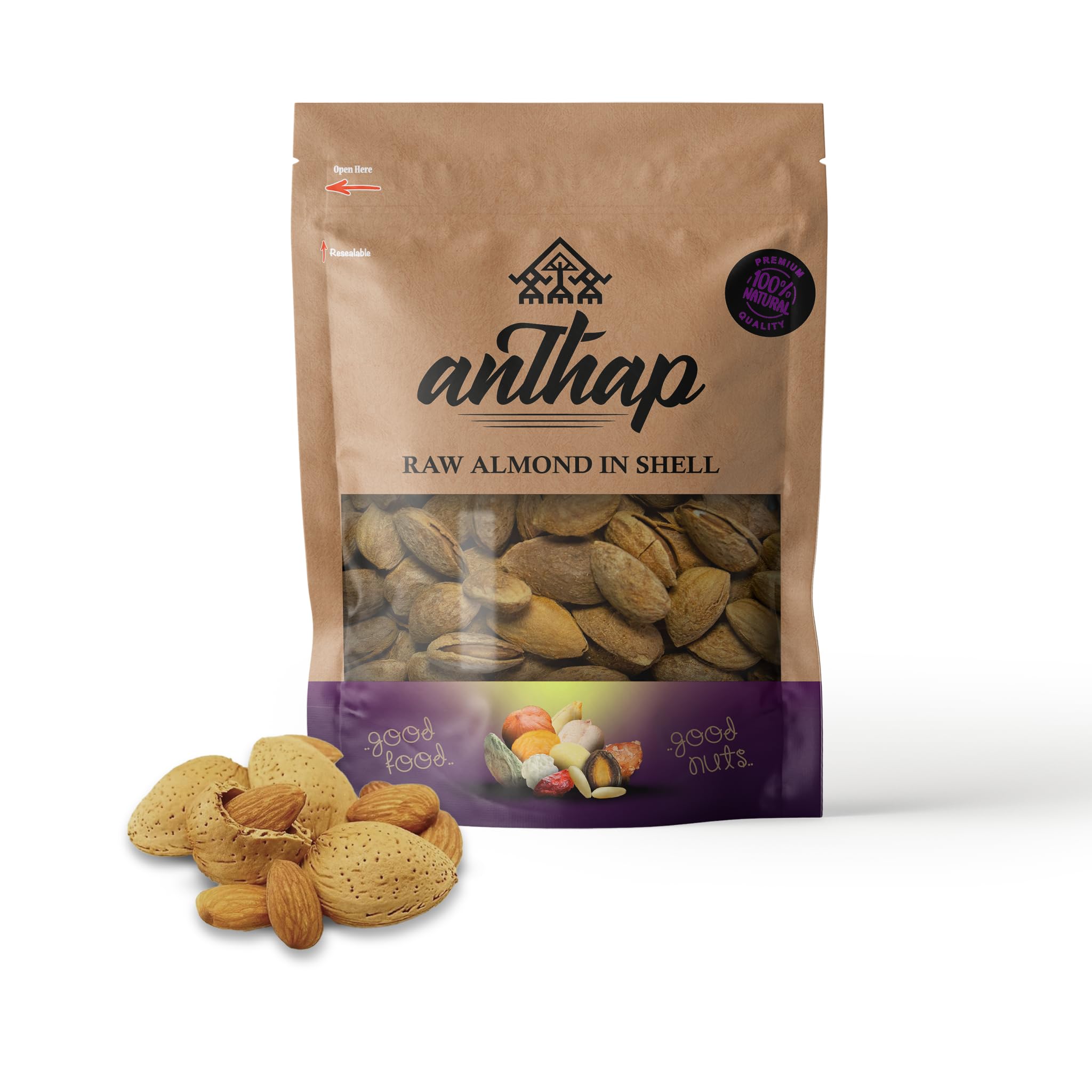 Anthap Raw Almond in Shell 700g - 100% Natural Healthy Snack Gluten Free Vegan Californian Almond Rich in protein and fibre