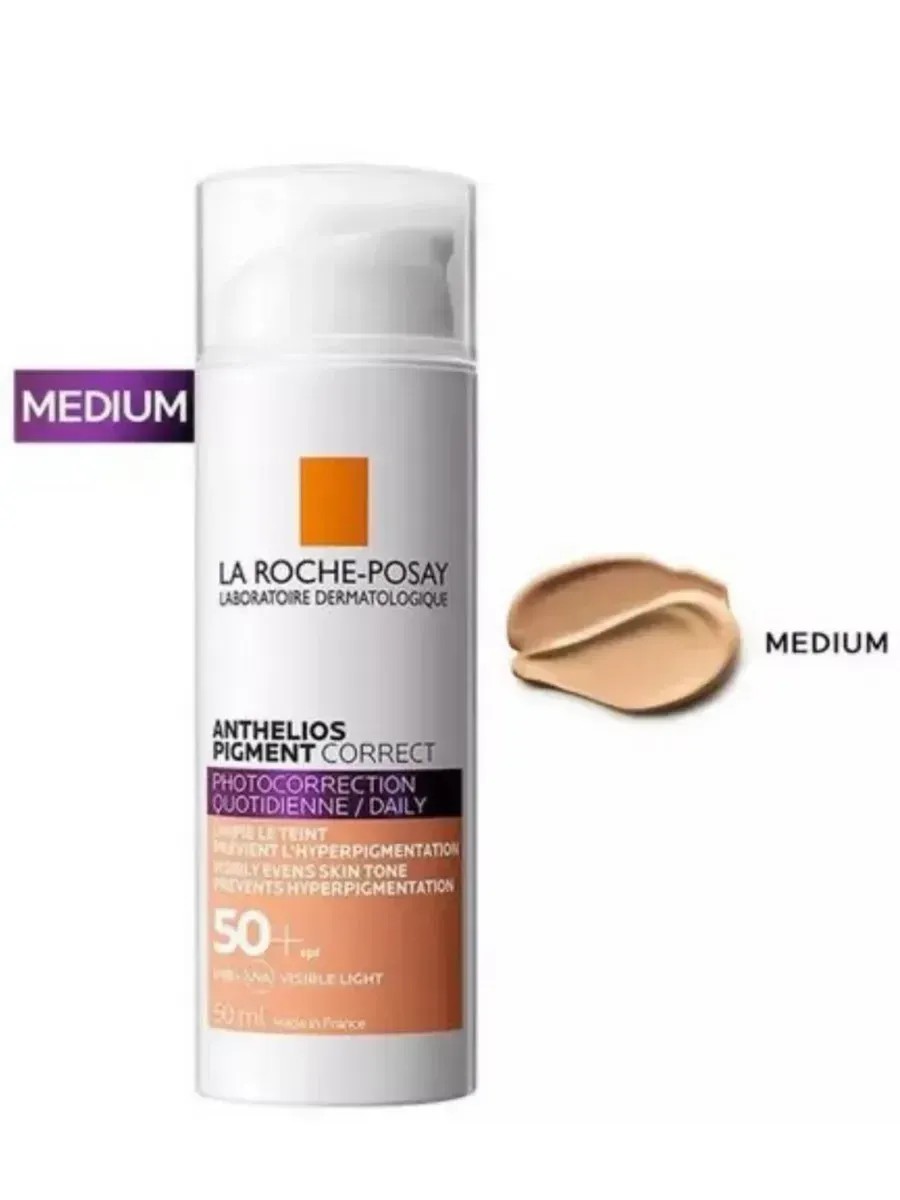 La Roche-Posay Anthelios Pigment Correct SPF50+ — это высокоэффективный защитный тональный крем для лица, который обеспечивает надежную защиту от солнечных лучей и помогает справиться с проблемой пигментации. Это современное солнцезащитное средство защищает вашу кожу от фотостарения, возникающего в результате ежедневных солнечных воздействий.